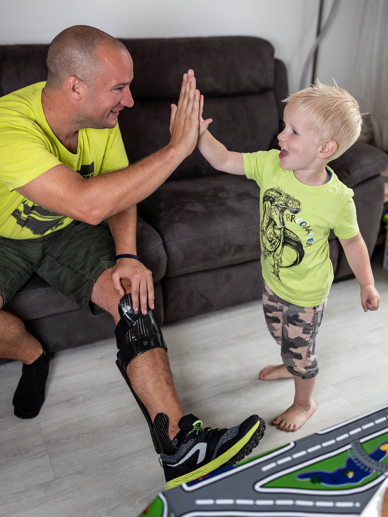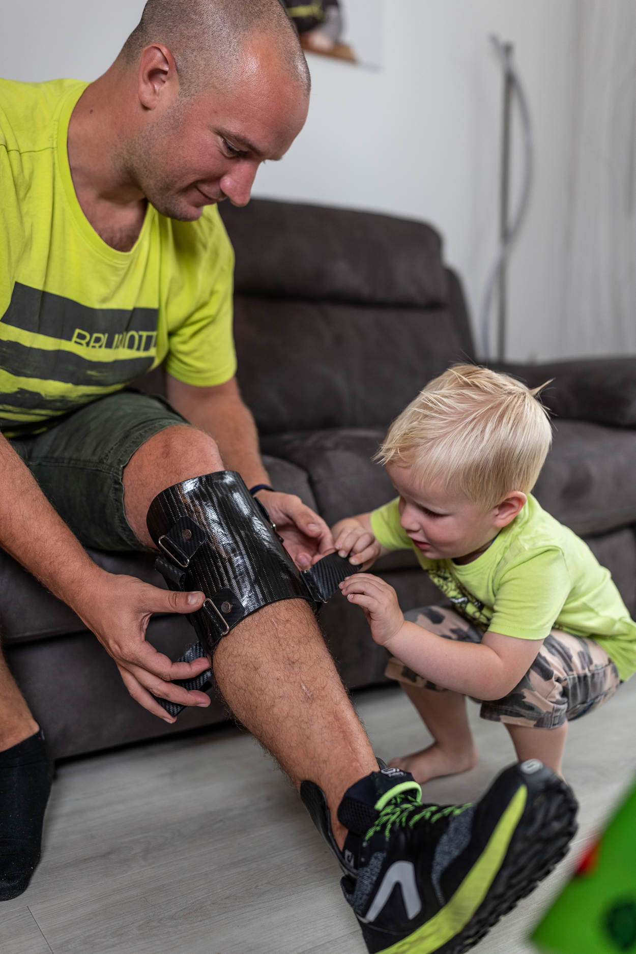 De volgende verandering dient zich ook al aan: Wouter wordt mobieler door een nieuwe brace. Een ontwerp uit Amerika, op de man aangepast door het Militair Revalidatiecentrum in Doorn. “Ik heb daarvoor nóg een revalidatietraject moeten volgen, maar dat is het waard. Ik kon zonder dit hulpmiddel maar kleine stukken lopen. Nu kan ik weer naar de winkels hier in de buurt, gewone dingen doen en spelen met onze zoon.”