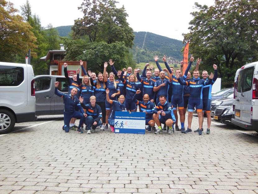 Het Stelvio-team van de Marechaussee heeft € 36.000,- euro opgehaald voor het goede doel Barcode for Life. Dat is een stichting die strijdt voor individuele behandeling (op basis van DNA) van kankerpatiënten. 21 teamleden zamelden het geld de afgelopen maanden in. Het hoogtepunt was de beklimming, hardlopend of fietsend, van de 21 kilometer lange Passo dello Stelvio in Italië.