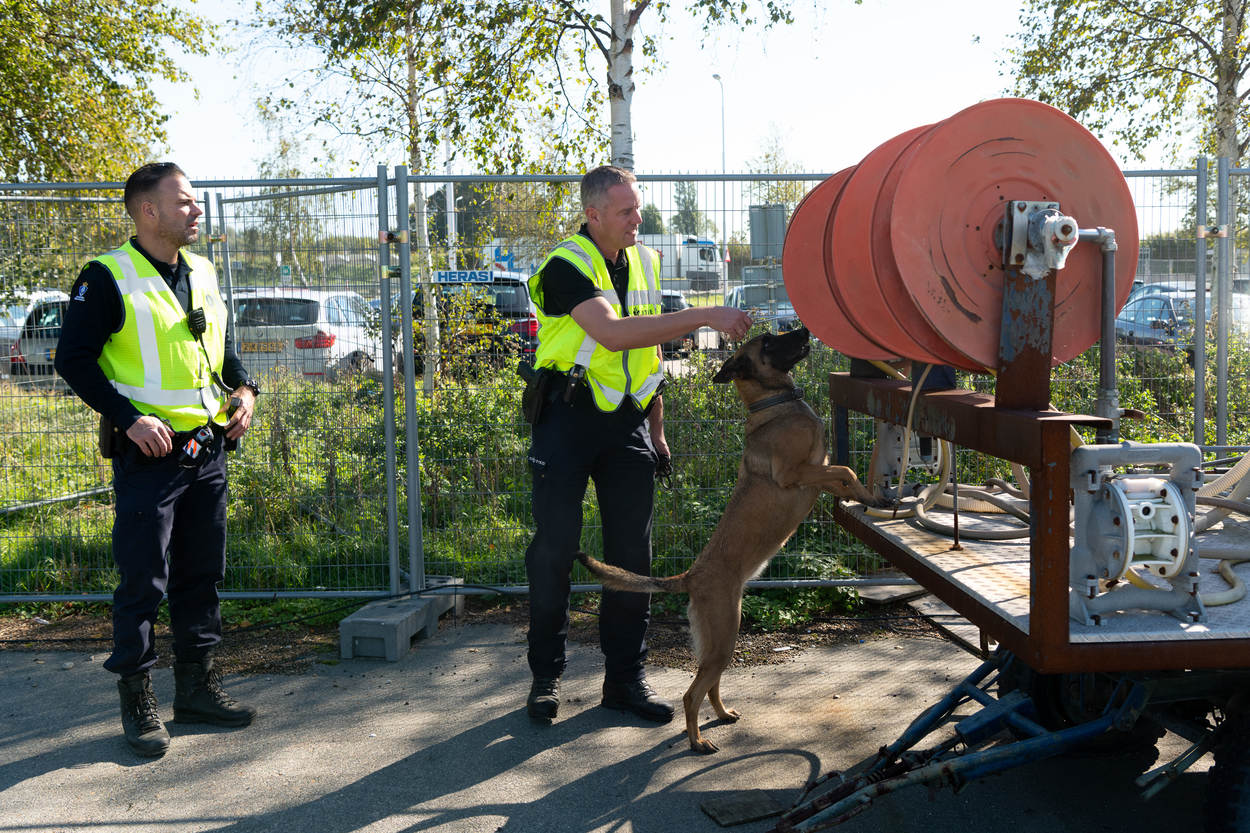 “Maar dat is het niet voor de honden”, zegt surveillancehondengeleider opperwachtmeester Frank serieus. De hond die doorgaans waakzaam en keurig naast hem loopt, kan op commando zijn focus verleggen en een verdachte overmeesteren. “Eigenlijk zijn het vooral heel sociale honden, die juist rustig blijven in het publieke domein. Samen surveilleren we op plekken met een verhoogd risico op onrust. De hond gebruik ik als laatste middel om in te grijpen.”