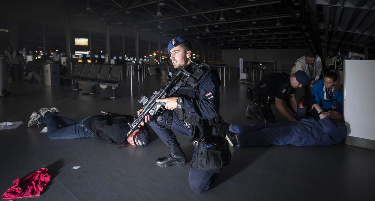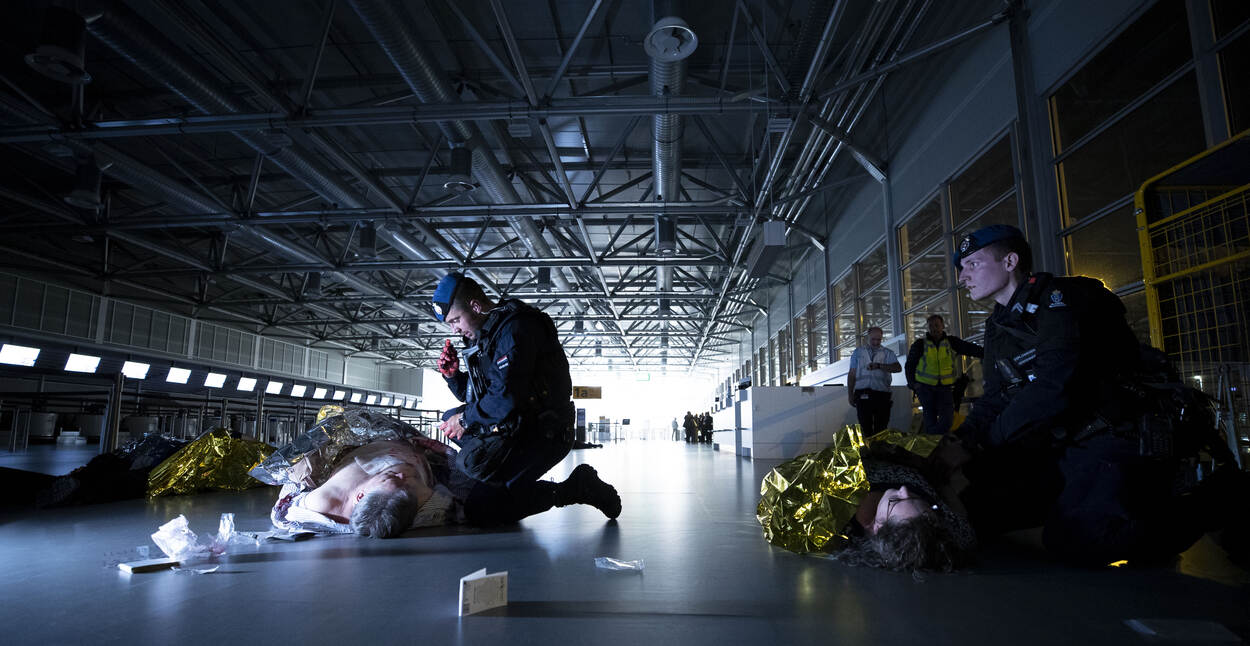 Een scenario waarvan niemand hoopt het ooit mee te maken, maar waarvoor iedereen wél klaar wil zijn: een aanslag op Schiphol. De Koninklijke Marechaussee oefende donderdagavond 14 maart samen met de brandweer en medische dienst van de luchthaven in en rondom de gloednieuwe check-in terminal 1a op Schiphol. Het belangrijkste oefendoel is de communicatie binnen het Schiphol Team Plaats Incident: het is dé basis voor goede en snelle hulpverlening.