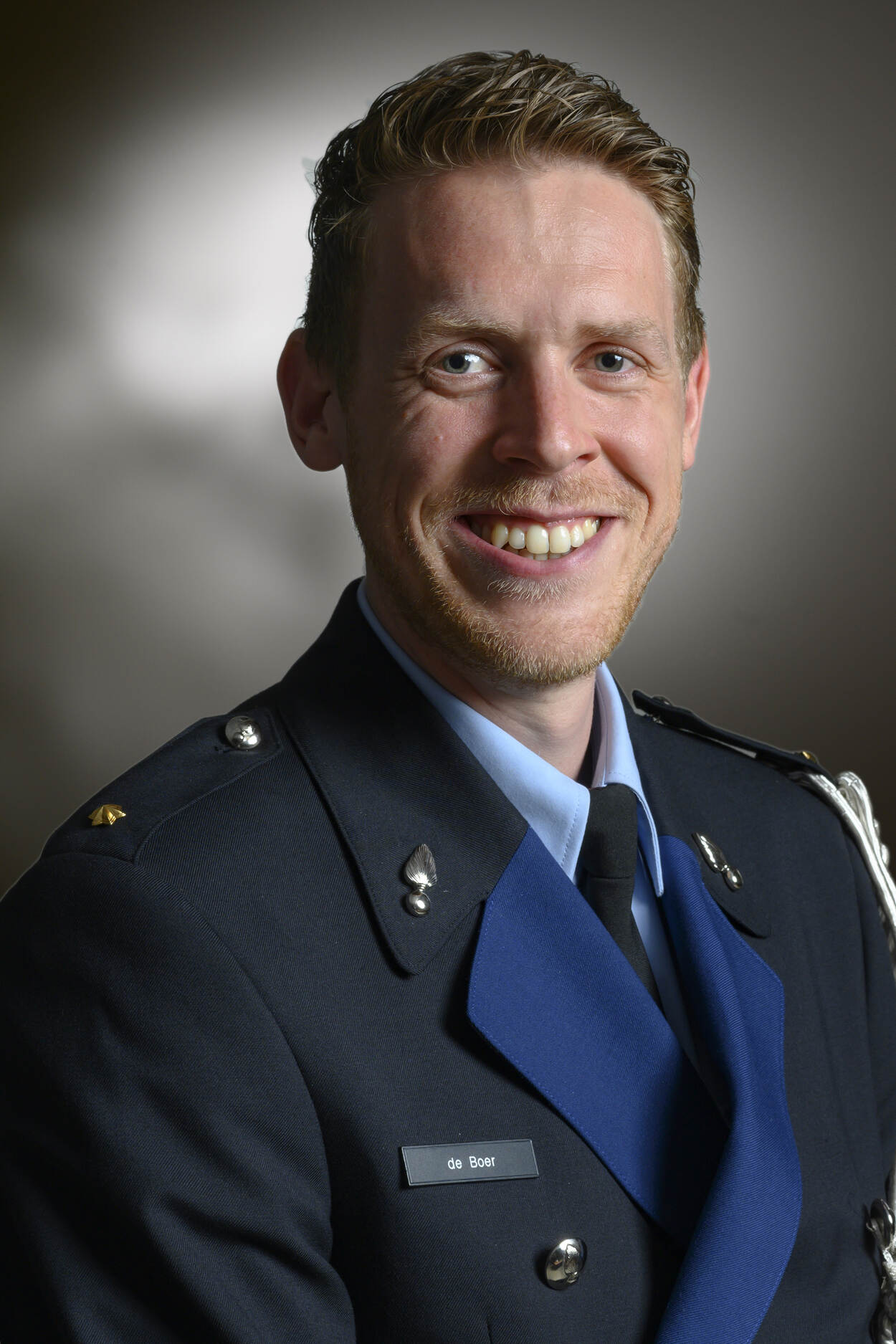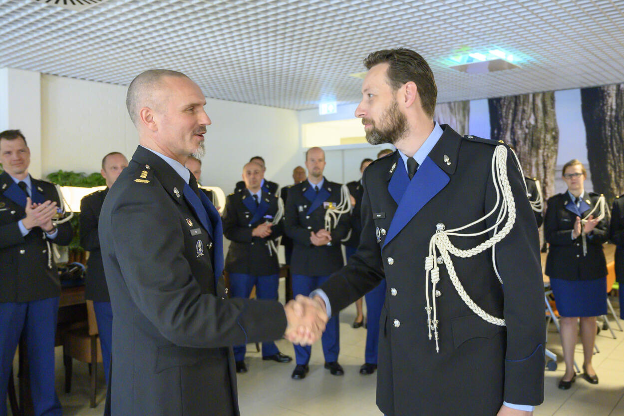 Stralende ogen, een brede glimlach. De gemoedstoestand van Frank Bal, laat zich niet lastig raden deze middag in Apeldoorn. “Ja, dit maakt me écht happy”, zegt de initiatiefnemer van de logistieke opleiding voor KMar'ers. Met gepaste trots schuift de kolonel de luitenantssterren op de schouders van ‘zijn jongens’.