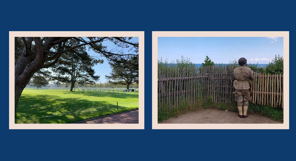 "Wij zijn Igor, Dennis, Anouk, Pascal en Rachèl. In verband met de herdenking 75 jaar D-day zijn wij afgereisd naar Normandië om de artikel 4-ondersteuning te doen voor de landmachteenheid die hier ook was. 75 jaar geleden startte in dit gebied operatie ‘Overlord’, van hieruit kregen de geallieerden voet aan wal om Europa te bevrijden.