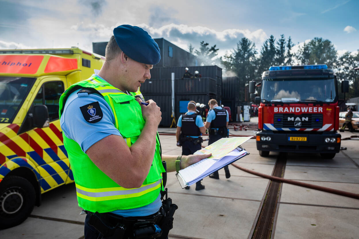 Collega’s van de brigade Politie en Beveiliging nemen momenteel deel aan een serie grote multidisciplinaire oefeningen op de voormalige vliegbasis Twenthe. In 6 sessies van 2 dagen krijgen ze samen met de brandweer en ambulancedienst van luchthaven Schiphol 10 scenario’s voor de kiezen. Gebeurtenissen waarvan je hoopt dat ze nooit zullen plaatsvinden, maar waar je wel op voorbereid moet zijn. Een grote brand, een schietpartij, zelfmoord of een terroristische aanslag, het zijn momenten dat je er moet staan, als het erop aankomt. Als individu, als team en als ketenpartner.