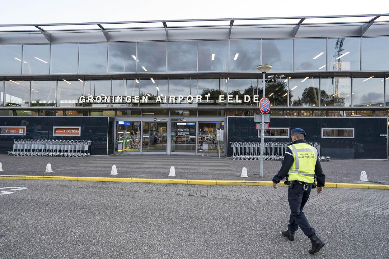 Geen toeterende auto’s bij de kiss and ride, geen lange rijen voor de incheckbalie. In niets doet vliegveld Eelde, iets ten zuiden van de stad Groningen, aan grote broer Schiphol denken. Het ligt er vredig bij. Criminaliteit lijkt hier ver te zoeken.