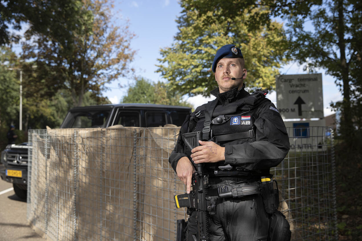 1. Aanleiding voor het verhogen van het dreigingsniveau is een bericht op social media. Daarin kondigt een terroristische organisatie aan een aanslag te willen plegen op Maastricht Aachen Airport. Omdat de KMar verantwoordelijk is voor de beveiliging van de burgerluchtvaart maakt 1 peloton van de Hoog Risico Beveiliging (HRB) zich klaar voor inzet. 2. Pelotonscommandant HRB tweede luitenant Dennis: “Ik heb wel vaker oefeningen gedraaid, maar die waren meestal alleen op papier. Een praktijkoefening als deze zouden we veel vaker moeten doen. Dan weet je waar je als eenheid aan toe bent en waar je tegenaan loopt. Nu kunnen we echt laten zien dat we er staan als het erop aankomt. Ik hoor alleen maar positieve geluiden uit mijn peloton.” 3. De HRB vertrekt onder begeleiding van de motorpool richting Maastricht Aachen Airport. Daar nemen ze de bewaking en beveiliging van de luchthaven over van de collega’s van de brigade Limburg-Zuid. Ook wordt de Delta-compagnie van 17 Pansterinfanteriebataljon van 13 Lichte Brigade gealarmeerd om bijstand te verlenen aan de KMar en zo het voortzettingsvermogen van de inzet te waarborgen. 4. Eenmaal bij de luchthaven bouwt de HRB een aantal roadblocks. Behalve statische inzet wordt er ook dynamisch gepatrouilleerd. “Deze inzet sluit naadloos aan op onze normale werkzaamheden. Of je nu een object in de Randstad beveiligt of een luchthaven, onze opdracht is hetzelfde. We zorgen dat het vliegverkeer door kan gaan en treden op als dat nodig is”, vertelt marechaussee-1 Arie. 5. In de ‘blauwe kamer’ volgt de oefenleiding alles op de voet. De scenario's bij de roadblocks worden met camerabeelden gevolgd. Majoor Ronald Sanders: “We gebruiken het Landelijk Crisis Management Systeem. Onze ketenpartners doen dat ook. Ideaal, want daarin staat wie wat doet en heeft gedaan. De situatie wordt live bijgehouden. Goed voor de situational awareness.” 6. Groepscommandant wachtmeester-1 Jelle bemant met zijn collega’s 1 van de roadblocks. Alle voertuigen die op de luchthaven moeten zijn, worden met argusogen bekeken. “Behalve de scenario’s met acteurs passeren hier ook mensen die niks met de oefening te maken hebben. Als we met een echte situatie worden geconfronteerd, kunnen we een beroep doen op de collega’s van de brigade Limburg-Zuid.” 7. De hulptroepen van 13 Lichte Brigade uit Oirschot zijn gearriveerd. De KMar stuurt de ‘groene’ collega’s aan. Landmachters zijn immers geen opsporingsambtenaar, maar ondersteunen de HRB waar mogelijk. Met de extra handjes is het eenvoudiger om te rouleren met de capaciteit en is het voortzettingsvermogen van de inzet gegarandeerd. 8. Groepscommandant sergeant-1 Chris van 17 Pansterinfanteriebataljon over de samenwerking: “In het begin moesten we het radioverkeer wel even afstemmen, maar we praten in grote lijnen dezelfde taal. De verschillen? Wij komen niet vaak met de burgerbevolking in aanraking, de KMar wel. Wij hebben daarentegen weer meer ervaring met roadblocks. Nu staan we schouder aan schouder, met hetzelfde doel.” 9. Soldaat-1 Ramon: “Ik vind deze inzet erg leuk om te doen. Het is weer eens wat anders. Normaal werken we in het bos. Ik beman samen met een KMar-collega een roadblock. Hij doorzoekt een voertuig en ik hou de omgeving en personen in de gaten. Ik ben erg benieuwd hoe het allemaal verder gaat. Het is in ieder geval leuk om te zien dat de KMar dingen anders doet, maar dat hun aanpak ook werkt.” 10. Een oefening is geen oefening als er niet ook daadwerkelijk iets gebeurt. Alle roadblocks werden ‘getrakteerd’ op een aantal casussen. Mensen die afwijkend gedrag vertoonden, een journalist, een vlogger, scheldende burgers en 2 mannen die een verkenning uitvoerden. Aan de bewakers en beveiligers de taak om de verdachte situaties te onderkennen en actie te ondernemen.