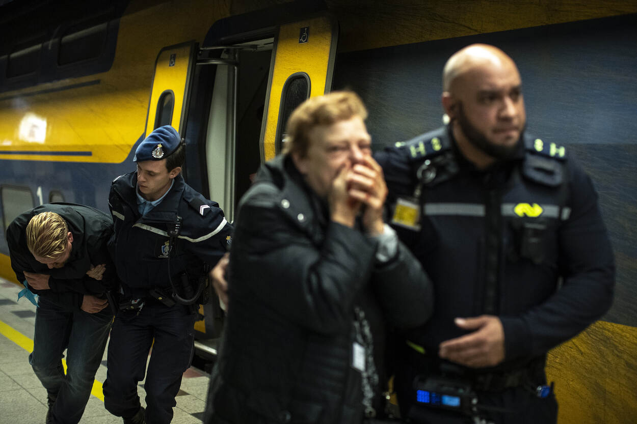 Op station Leiden is een ‘verdachte groep mannen’ de trein richting Schiphol ingegaan. Een conducteur spreekt een van hen aan, waarop die persoon zich opsluit in een toilet. Onmiddellijk wordt assistentie van de Koninklijke Marechaussee ingeroepen, die de politietaak op Schiphol vervult.