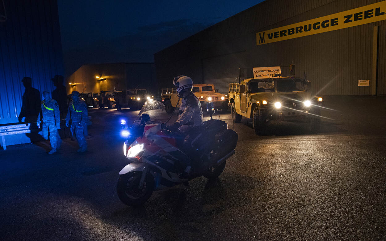 De Amerikaanse militairen en het materieel werden over de weg, per trein en via binnenvaartschepen vervoerd. Personeel van de landmacht en de Defensie Bewakings- en Beveiligingsorganisatie beveiligden onder meer de haventerreinen in Rotterdam en Vlissingen. Daarnaast leverde Defensie brandstof en vervoerde een deel van het Amerikaanse materieel met vrachtwagens. (Foto: sergeant Kyle Larsen)