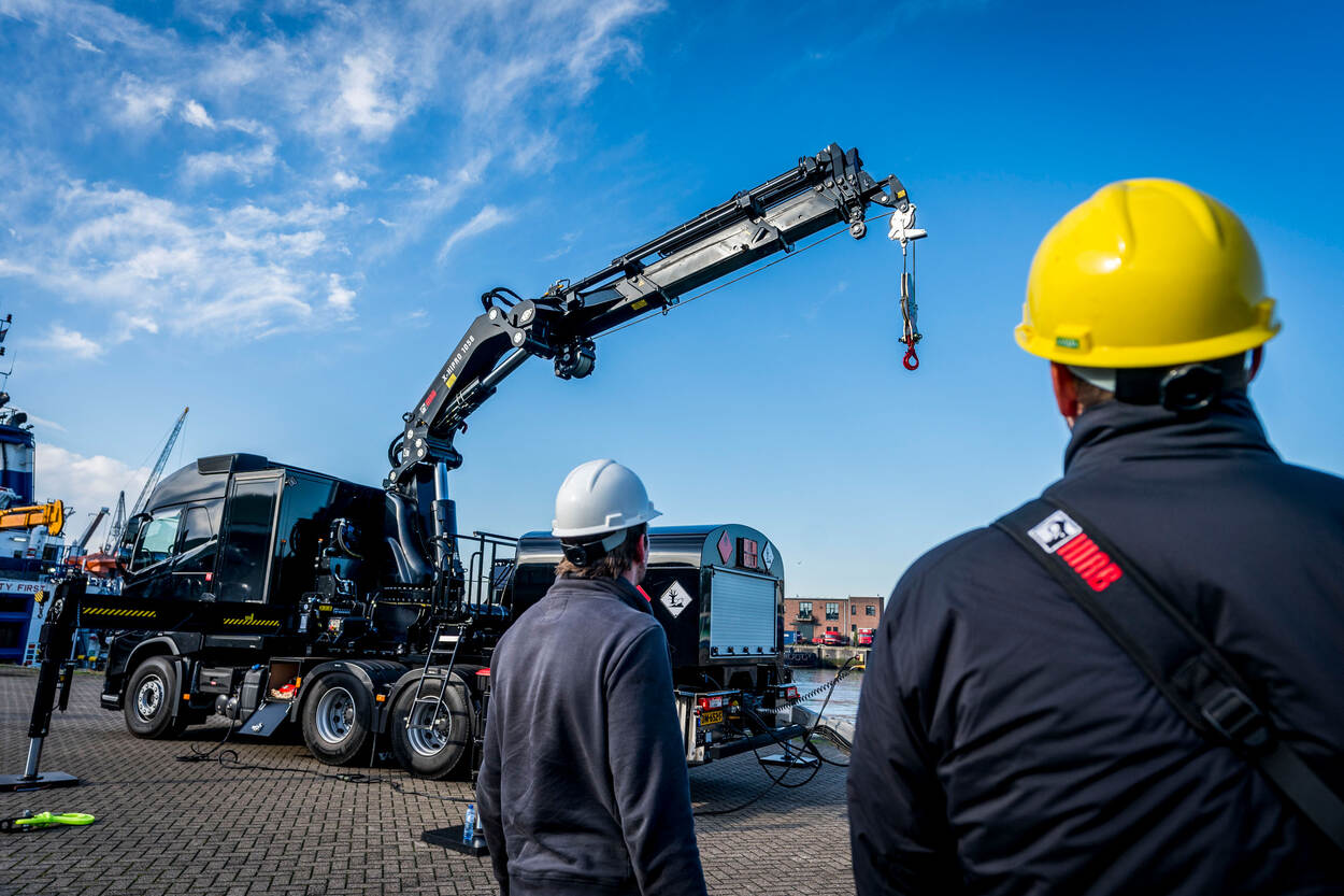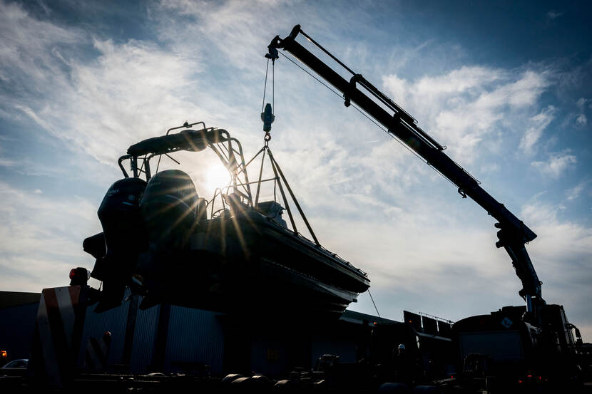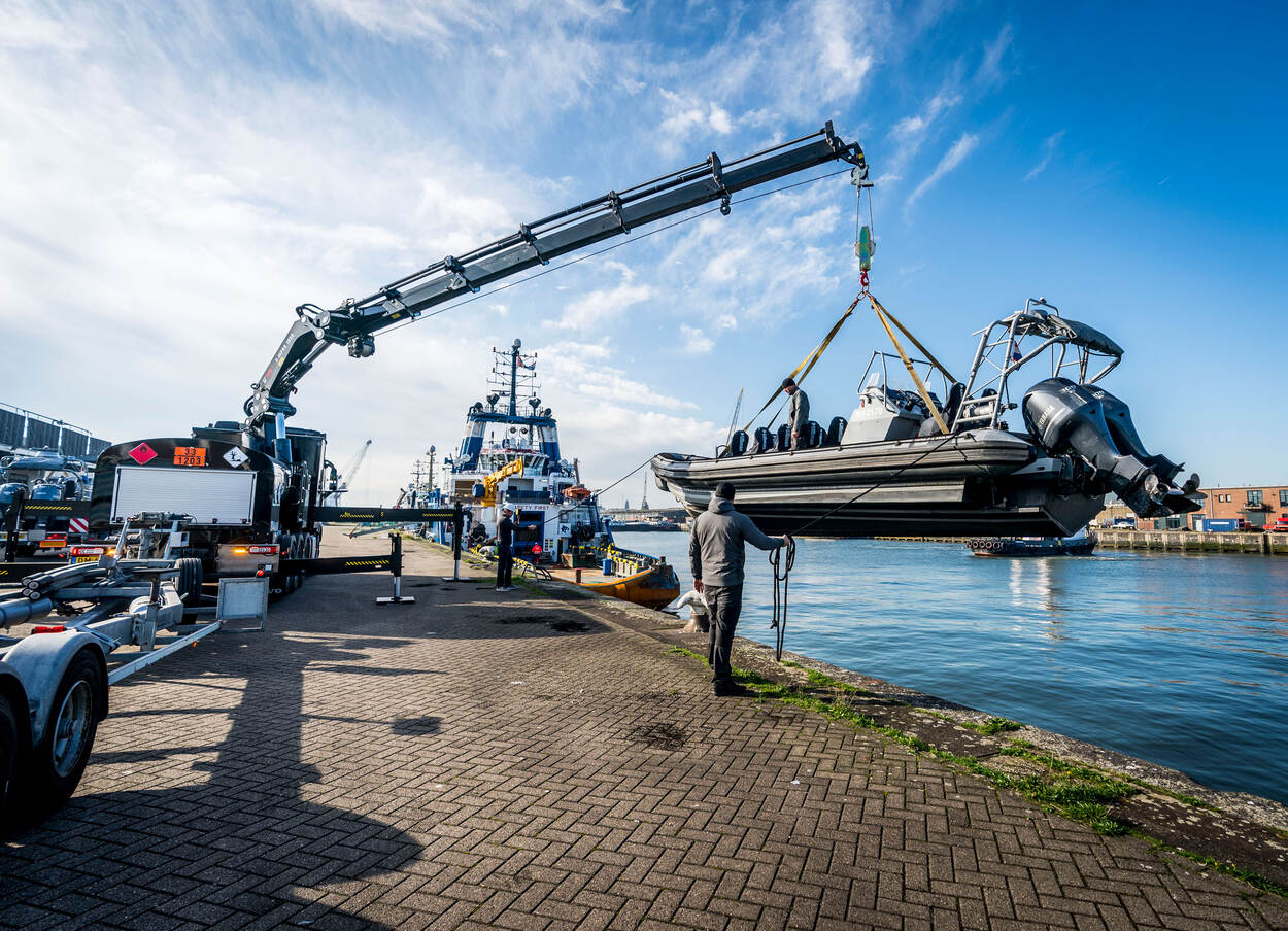 “Voorheen moesten we met een vrachtwagen, aanhanger en een aparte takelwagen naar de kade om 1 boot te kunnen lanceren”, legt opperwachtmeester Arjan uit. “Dat kon maar op een beperkt aantal plekken in Nederland, omdat het bereik van de kraan niet verder ging dan 5 meter. Nu kunnen we zo’n beetje overal de boten te water krijgen. En dat maakt ons een stuk flexibeler.”