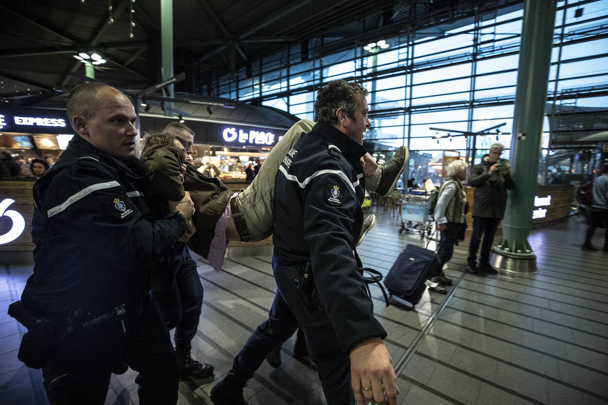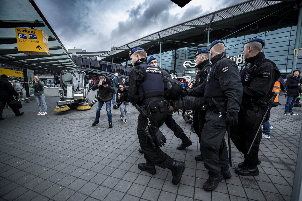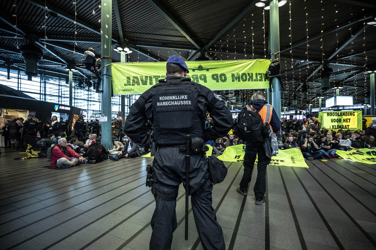 De Koninklijke Marechaussee ondersteunde op 14 en 15 december de gemeente Haarlemmermeer tijdens de klimaatdemonstraties op luchthaven Schiphol. Collega’s van onder andere de Landelijke Bijstandsorganisatie, Brigade Politie en Beveiliging, Grensbewaking, Brigade Speciale Beveiligingsopdrachten en beredenen van de Nationale Politie kwamen urenlang in actie, omdat demonstranten weigerden Schiphol Plaza te verlaten. Hierbij een fotoverslag van deze inzet.