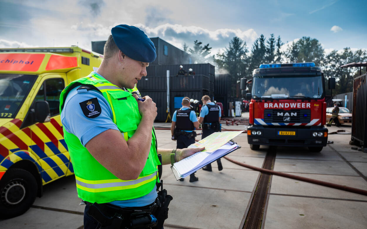 Collega’s van de brigade Politie en Beveiliging hebben een serie grote multidisciplinaire oefeningen gehouden met de brandweer en ambulancedienst van Schiphol.