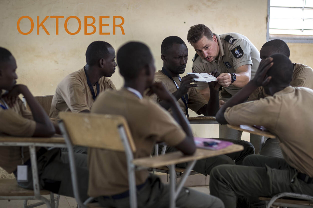 15 KMar-instructeurs hebben in internationaal verband 3 weken lang les gegeven aan 260 Nigerse agenten die gaan werken bij een nieuwe grenseenheid. De lessen gingen over documentfraude, migratiestromen en wet- en regelgeving. En dat zijn precies de onderwerpen waar de KMar internationaal hoog voor aangeschreven staat. Foto: sergeant-majoor Gerben van Es