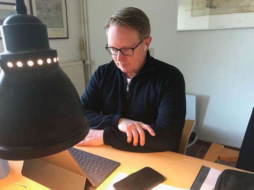 Net als veel marechausseecollega’s werk ik momenteel deels thuis, samen met mijn echtgenote. We houden een strak schema aan: ’s ochtends de honden uitlaten, ontbijten en dan aan het werk. Ik overleg nu vaker telefonisch of via FaceTime. Ik was nooit een fan van FaceTime, maar het went snel. Hoewel ik het persoonlijke contact mis, is dit een prima noodoplossing. Je hebt toch even contact en ziet elkaar. Ook is gebleken dat je effectief kunt vergaderen via deze app. In het begin was het even zoeken, maar het werkt nu best goed. Ik ben er sneller aan gewend geraakt dan ik had gedacht.”