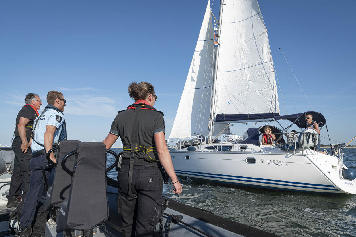“Net als op de weg moeten eigenaren van een boot de juiste papieren bij zich hebben”, vertelt Sietse als hij weer terug is op de RHIB. “Kunnen ze die snel overhandigen, dan weet je meestal dat het goed zit. Ik controleer de identiteit van de opvarenden en vraag ze naar hun reisplannen. De Douane checkt goederen aan boord en eigendomsgegevens om te zien of er wel belasting is betaald over de aankoop van het schip. Zeker in Zeeland willen mensen nog wel eens een boot kopen in België en die stilletjes de Nederlandse wateren invaren.”