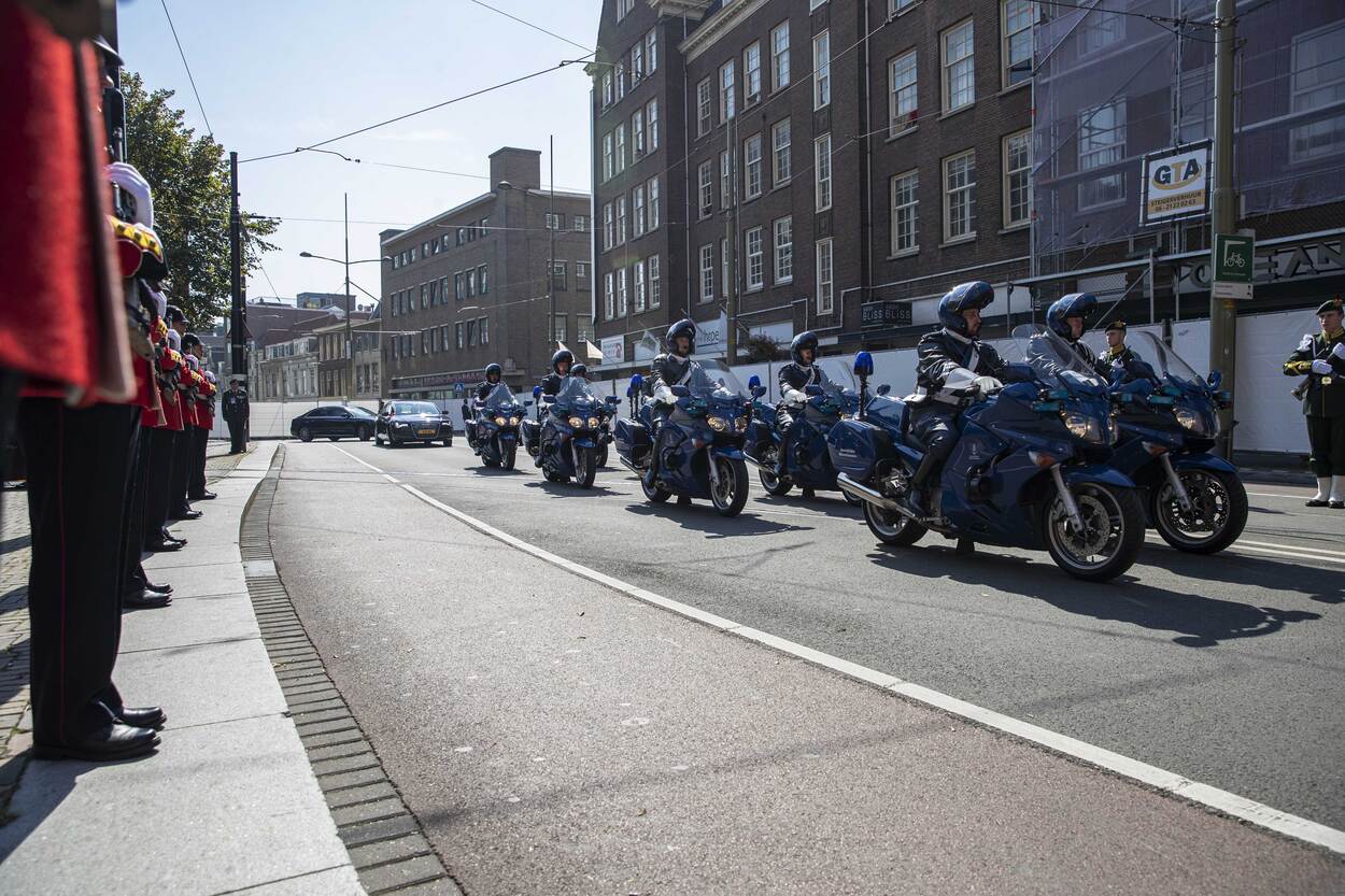Toch droeg de KMar op 15 september, binnen de coronamaatregelen, haar steentje bij. Zowel bij Paleis Noordeinde als bij de Grote Kerk stond een dubbelpost opgesteld. 2 collega’s in ceremonieel tenue brachten de eregroet als eerbetoon aan de Koning. En een ere-escorte van 8 motoren begeleidde de koning van Paleis Noordeinde naar de Grote Kerk, waar hij dit jaar de Troonrede uitsprak. Na afloop begeleidde de Marechaussee de koning terug naar Noordeinde.