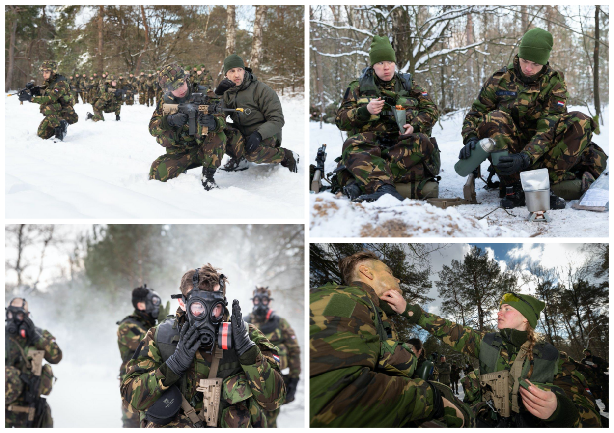 Een nieuwe lichting marechaussees kon tijdens de opleiding laten zien dat ze zonder morren de kou trotseren. In de omgeving van Ermelo kregen de leerlingen tijdens een bivak les in algemene militaire basisvaardigheden.