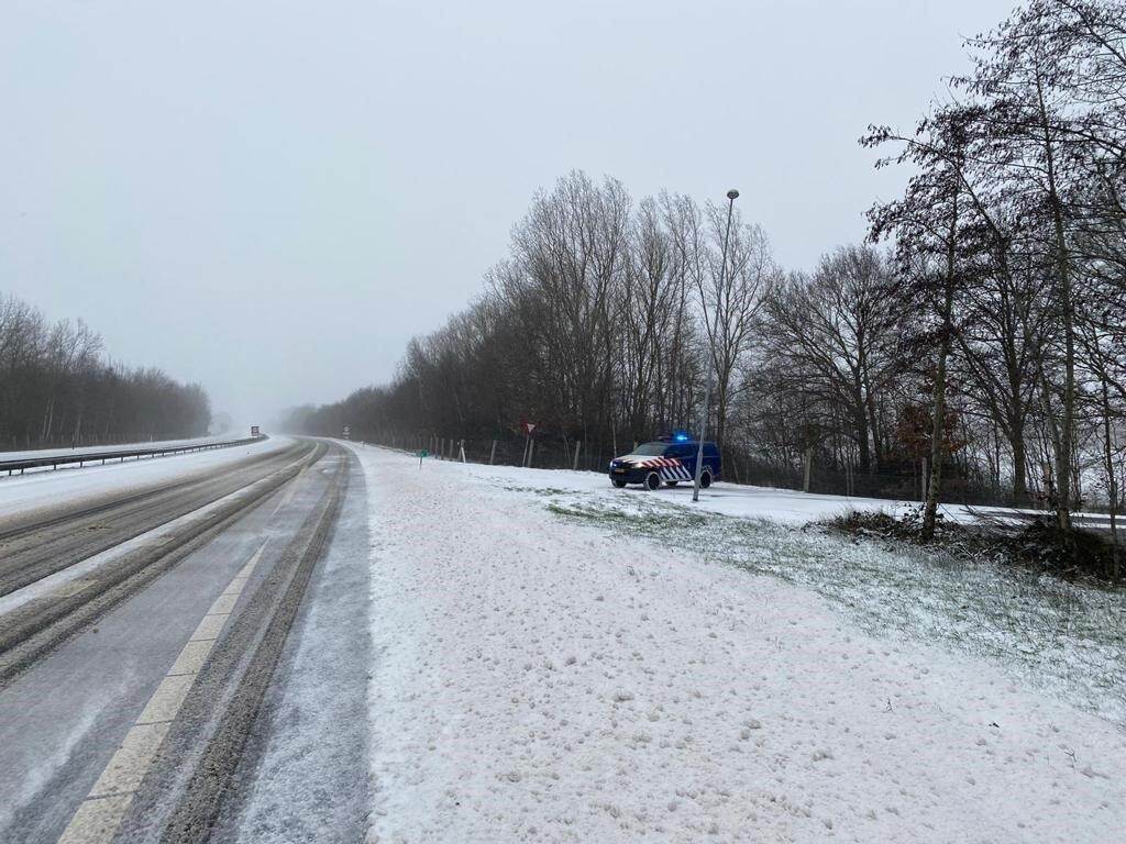 De collega’s van brigade Oostgrens-Noord locatie Coevorden zagen fors minder verkeer voorbijrijden tijdens de controles Mobiel Toezicht Veiligheid, onder meer op de autosnelweg A37 nabij grensovergang Zwartemeer. Ook moesten ze zelf extra voorzichtig te werk gaan vanwege de glibberige wegen.