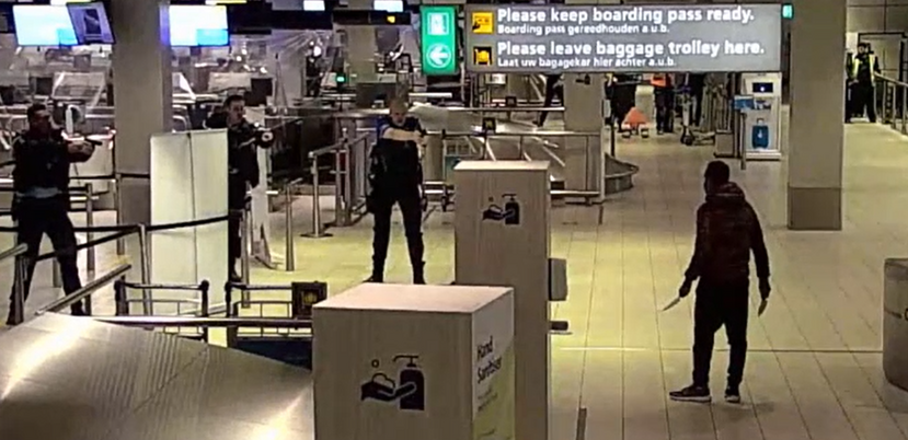 “De man is veroordeeld tot enkele maanden celstraf, die hij al in voorarrest had uitgezeten. Het bleek te gaan om een verwarde man die terug wilde naar zijn land van herkomst, Tanzania. De messen had hij kort voor zijn actie in een winkel gestolen. Hij was ermee naar Schiphol getogen om aandacht te vragen voor zijn zaak. Inmiddels is hij uitgezet naar Tanzania.”