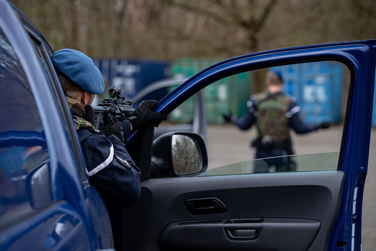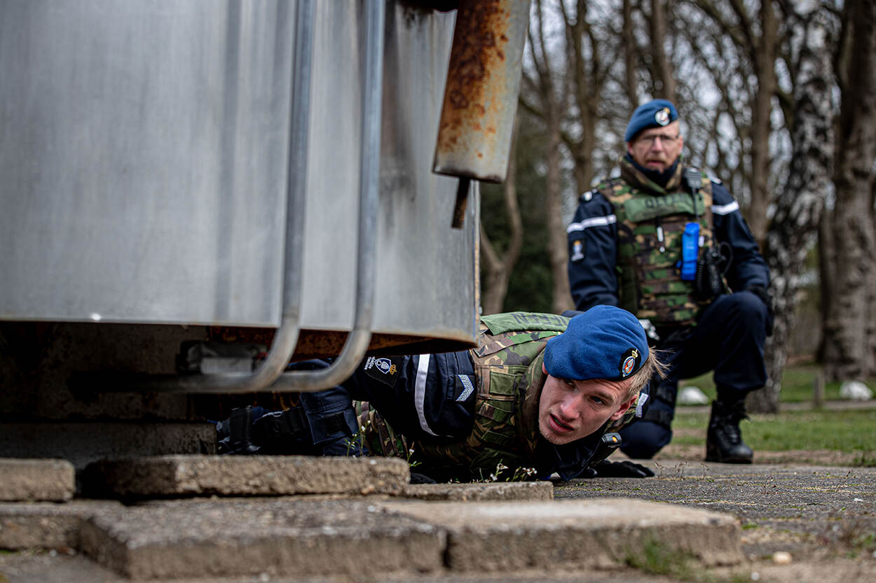 Bij het eskadron Hoog Risico Beveiliging en de Gewapende Beveiliging Burgerluchtvaart Schiphol zijn medio april nieuwe operators aan de slag gegaan. In 4 weken tijd werden ze met de opleiding Hoog Risico Operator klaargestoomd voor hun nieuwe functie: het bewaken en beveiligen van objecten, personen en diensten. In week 3 van de opleiding kregen de cursisten op Kamp Nieuw Milligen een tiental realistische scenario’s in verschillende geweldsspectra voorgeschoteld. Daarin konden ze de tot dan toe geleerde vaardigheden in de praktijk toepassen en zich zo optimaal voorbereiden op het echte werk.
