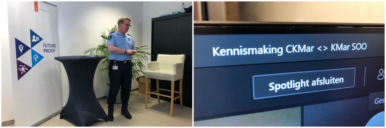 “Ik ben erg blij dat ik gebruik kan maken van de mogelijkheid om de SOO te volgen en mij zo verder te ontwikkelen tot officier. Tijdens de opleiding, die een half jaar duurt, wordt uitgebreid aandacht besteed aan het thema leidinggeven. Een opdracht was om binnen en buiten de KMar gesprekken te voeren met leidinggevenden. Zo kunnen we ons breed oriënteren op dit thema, ons blikveld verruimen en netwerk vergroten. Iedere cadet heeft een steentje bijgedragen aan het programma. Zo heb ik de ontmoeting met CKMar opgestart. Het resulteerde in een video-overleg. We spraken met hem over leidinggeven in de breedste zin van het woord. CKMar gaf aan dat - als het weer mogelijk is - het gesprek wat hem betreft zeker een vervolg krijgt in de vorm van een fysieke bijeenkomst.
