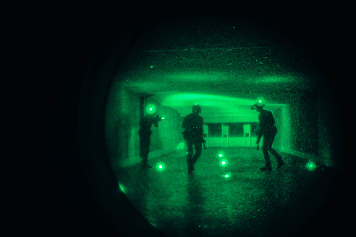 Er is letterlijk licht aan het eind van de tunnel voor collega’s van de Brigade Speciale Beveiligingsopdrachten (BSB). De invoering van Night Vison Goggles moet optreden in duisternis een stuk makkelijker maken. Voor het eerst leren ook BSB’ers in spé al tijdens hun basisopleiding te werken met deze speciale nachtkijkers. KMarMagazine keek mee tijdens een van de trainingen.