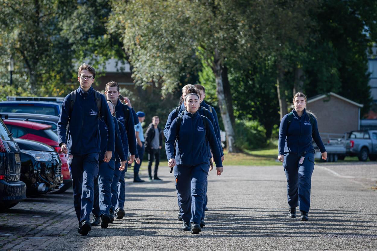 Al tijdens je opleiding stage mogen lopen bij je toekomstige werkgever. 28 studenten van het Regionaal Opleidingscentrum Landstede uit Zwolle kregen de afgelopen 3 weken die kans. Als onderdeel van de opleiding Handhaver Toezicht en Veiligheid KMar werd de poort van het Opleidings-, Trainings- en Kenniscentrum Koninklijke Marechaussee in Apeldoorn voor hen geopend. Een mooi moment voor de studenten om alvast te ervaren hoe het er in de wereld van de Marechaussee aan toegaat. Fotograaf korporaal Gregory Fréni legde de eerste fysieke kennismaking tussen de studenten en de KMar vast.