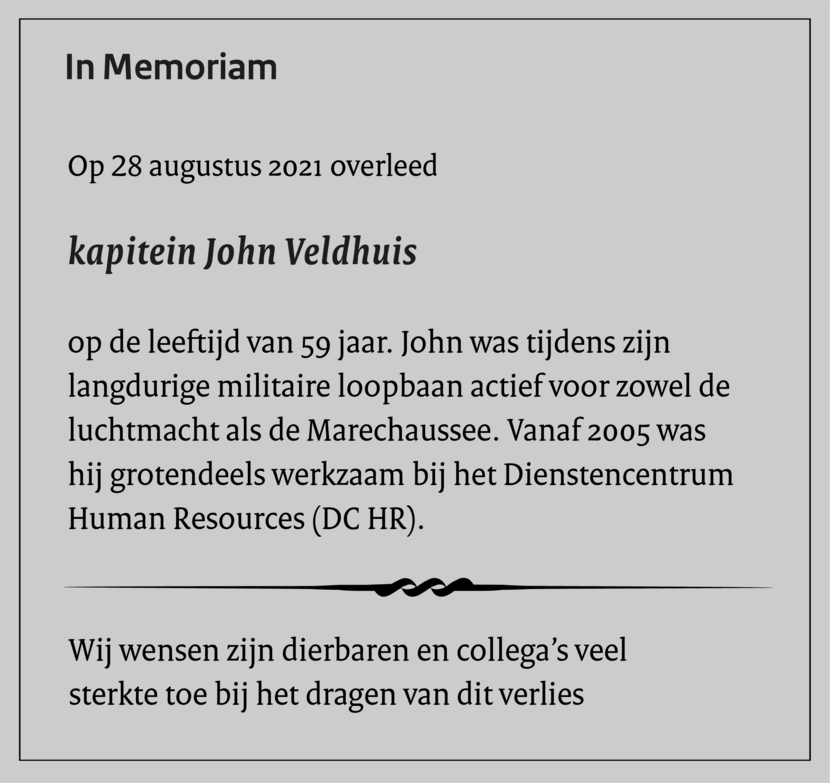 Ook dit jaar vindt de Veteranendag KMar plaats in aangepaste vorm. Commandant Koninklijke Marechaussee heeft na gedegen overleg met de organisatie van het evenement besloten dat er teveel onzekerheid is rond het eventueel versoepelen van de coronamaatregelen om het evenement op 1 oktober op een goede manier te organiseren.