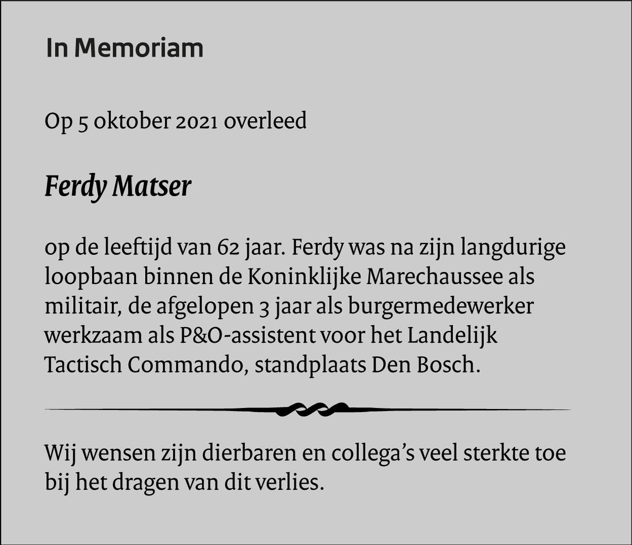 Ook dit jaar vond de Veteranendag KMar plaats in aangepaste vorm. De herdenking bij het Marechausseemonument op de Koning Willem III-kazerne in Apeldoorn was daarom op uitnodiging voor een beperkt aantal veteranen toegankelijk. Omdat de commandant van de Koninklijke Marechaussee luitenant-generaal Hans Leijtens (CKMar) veel waarde hecht aan herdenken, waarderen en erkennen van (oud)collega’s, konden andere (post)actieve veteranen de ceremonie volgen via een livestream.
