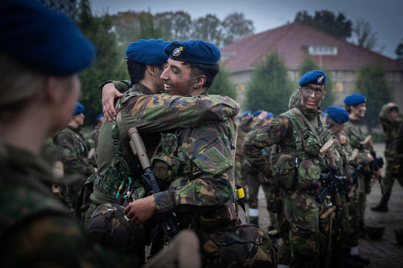 De marechaussees van lichting 21-06 hadden onlangs geluk. Zij mochten hun blauwe baret op de oude vertrouwde manier in ontvangst nemen: in aanwezigheid van ouders, partners, collega’s en medeleerlingen. Die mochten hen weer als vanouds ‘live’ onthalen op de Koning Willem III-kazerne in Apeldoorn. Daarna ontvingen de marechaussees op het centrale Square hun blauwe baret: een beloning voor alle inspanningen in hun groene periode.