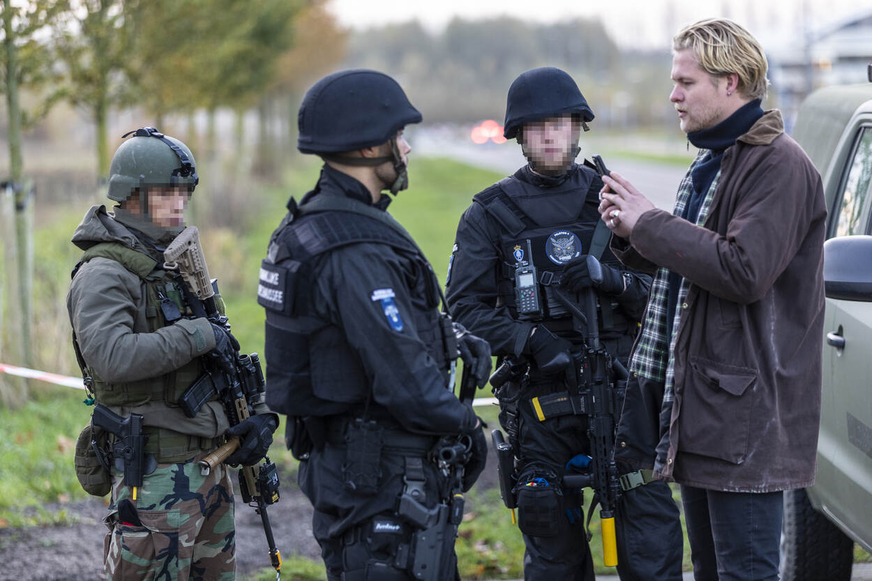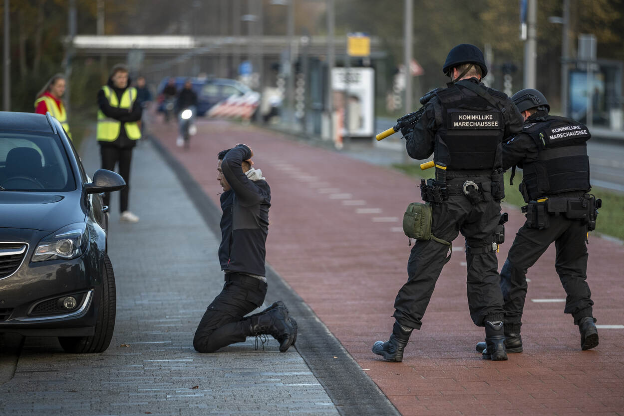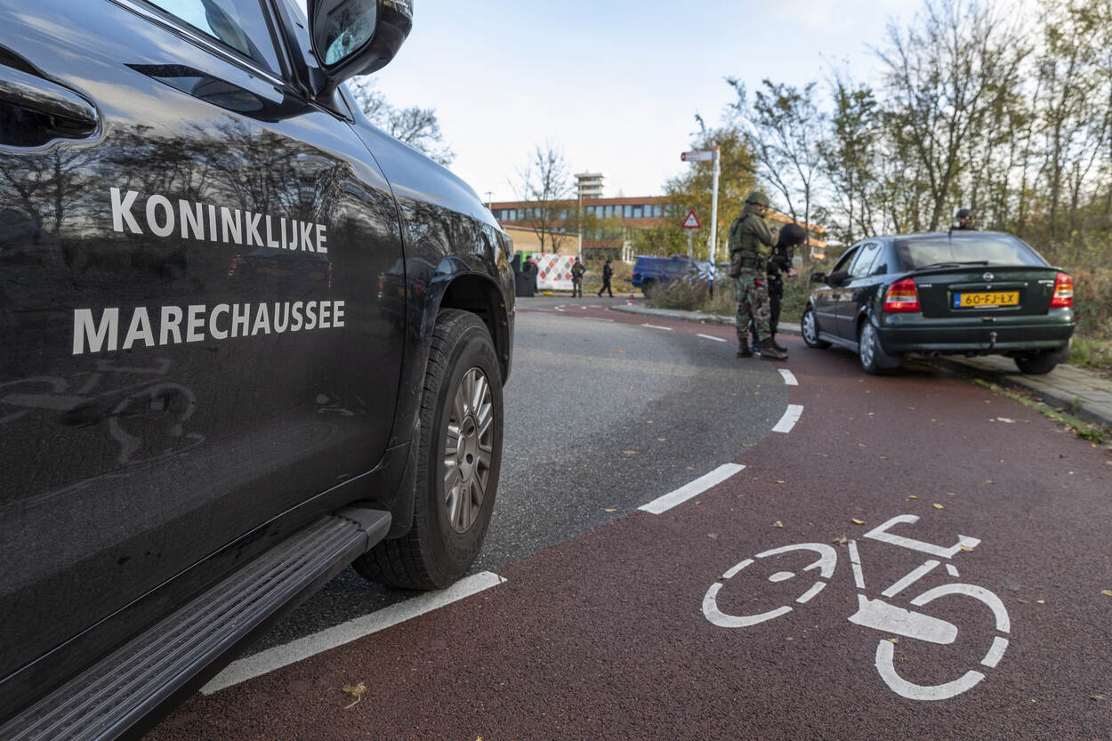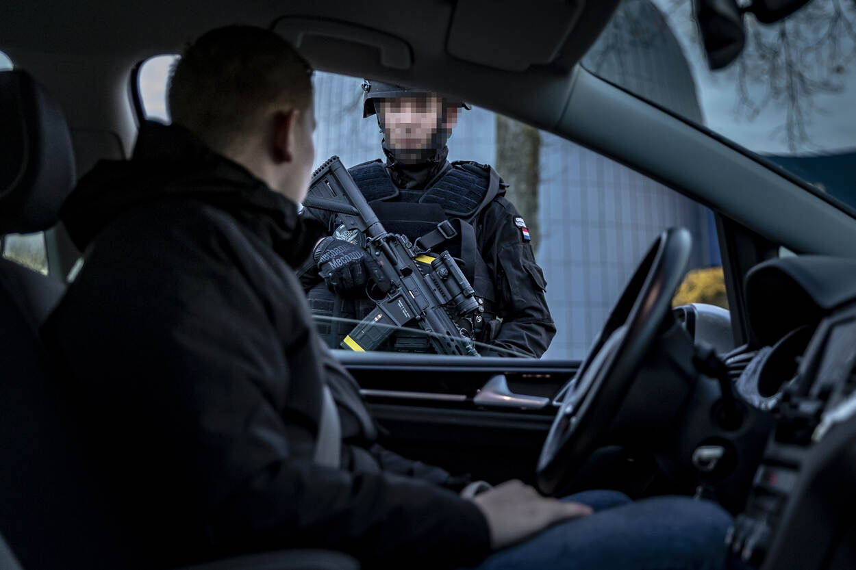 De trainingen vonden plaats in week 44 tot en met week 49. Elke week trainde een HRB-peloton met een eenheid van de Koninklijke Marine (1 keer) of de Koninklijke Landmacht (5 keer). De training bestond steeds uit 2 dagen. Dag 1 stond in het teken van opschaling vanuit Bewaken en Beveiligen en het gezamenlijk trainen van de skills en drills benodigd voor deze inzet. Op dag 2 werden de vaardigheden beoefend in een realistische omgeving en context. De oefening ARGUS vond plaats op 3 locaties. Bij het Reactor Instituut Delft (zie foto), bij het militair oefenterrein Waalsdorp in Den Haag en nabij het NATO Communications and Information Agency (NCIA), eveneens in Den Haag. De KMar en de mariniers hebben een zogeheten voertuigcontrolepunt ingericht bij de ingang van het Reactor Instituut Delft. Iedereen die het terrein wil betreden, moet zijn of haar identiteitsbewijs tonen. Het profilen van mensen is daarbij een belangrijk onderdeel. Wie bijzonder gedrag laat zien, kan aanvullende vragen verwachten. De eenheden hebben in de voorbereidingen volop getraind in het herkennen van afwijkende gedragingen. “Waarom staan jullie hier? Wat is er aan de hand?” Een journalist wil weten waarom de HRB en de mariniers het Reactor Instituut in Delft beveiligen. De HRB-operators beantwoorden enkele vragen en wijzen de interviewer daarna vakkundig door naar een persvoorlichter. Trainen in het publieke domein is ideaal. Behalve de acteurs die tot het scenario behoren, controleren de HRB’ers en mariniers ook alle werknemers van het Reactor Instituut. Net zoals dat in het echt zou gebeuren. Stilstaan of stilzitten in de buurt van het controlepunt is niet toegestaan bij verhoogde dreiging. Een dronken man die in het gras op zijn gemak een biertje wil drinken, wordt daarom vriendelijk doch dringend verzocht zijn vertier elders te zoeken. Hetzelfde geldt voor stilstaande auto’s nabij de ingang van het vitale object. Na het controleren van hun papieren, wordt ook hen gevraagd: “Kunt u alstublieft op een andere plek gaan staan?” Evalueren is essentieel. Hoe was de aanpak? Hoe kwam het over op de acteurs? De marechaussee en marinier bleven rustig tijdens de casus die op de foto wordt besproken. “Netjes afgehandeld” en “mooi opgelost”, luidde de conclusie. De HRB’ers en mariniers moeten ook alert zijn op incidenten rondom het voertuigcontrolepunt, zoals bij een plotseling conflict tussen een voorbij lopende man en vrouw. De man steekt de vrouw ineens neer. Hij wordt snel onder vuur genomen, overmeesterd en in de boeien geslagen. De neergestoken vrouw is tegen de vlakte gegaan. De eenheden verlenen rap de benodigde eerste hulp. Ondertussen kijkt IBT-instructeur adjudant Eric tevreden toe. “Jullie hebben adequaat gehandeld. Mijn complimenten”, evalueert hij na afloop. “Jullie hebben meteen een goede 360 weggezet en behielden het overzicht. Houd dit vast!” De eenheden moeten onder meer voorbereid zijn op een terroristische aanslag door een eenling, met één of enkele slachtoffers. Ook dit scenario werd beoefend. Gelukkig werd een naderend voertuig met daarin een terrorist met bomvest op tijd onderkend. In crisissituaties kan er van alles tegelijk gebeuren. Zo ontsnapt er uit de auto van de zelfmoordenaar een gegijzelde vrouw die gemarteld is en onder de brandwonden zit. Terwijl de ene collega de terrorist onder schot houdt, verzorgt een andere collega de zwaargewonde en getraumatiseerde vrouw. Teamwork in optima forma. De samenwerkende partijen hebben afgelopen jaren soortgelijke oefeningen georganiseerd, onder meer in samenwerking met de luchthavens Schiphol en Maastricht Aachen Airport. De evaluatiepunten uit die oefeningen waren meegenomen in de oefening ARGUS.