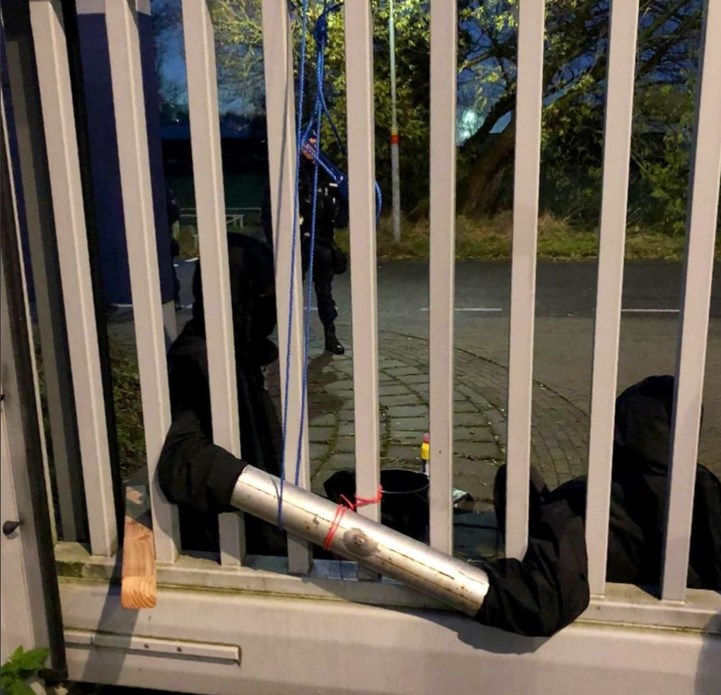 Een actiegroep heeft afgelopen weekend urenlang een deel van de Koningin Máximakazerne van de Marechaussee bij Schiphol geblokkeerd. De Marechaussee heeft de actie beëindigd en 10 demonstranten van Stop the War on Migrants aangehouden. De demonstranten hadden zich vastgemaakt aan de hoofdpoort en enkele hekken van de kazerne. Ze negeerden het bevel om zich los te maken en te vertrekken.