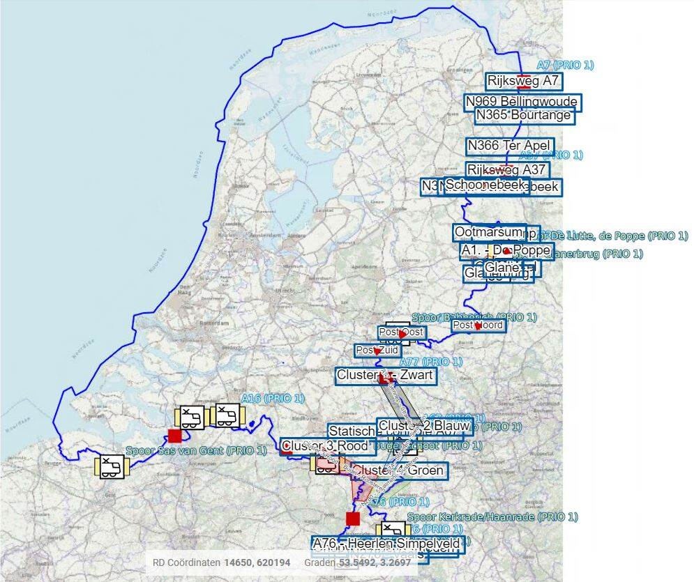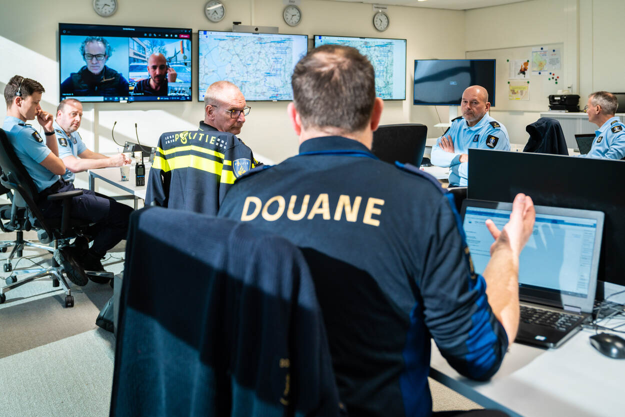 De Korridor Fahndung-actie vond altijd 2 keer per jaar plaats, in het voorjaar en najaar. Dit jaar wordt het aantal opgevoerd. Chief Operations majoor Evert Smit: “We willen elke keer kunnen focussen op een andere ketenpartner. Deze keer hebben we het taakveld van de Douane meer onder de aandacht gebracht.” Snel schakelen met verschillende ketenpartners en gebruikmaken van elkaars kennis en bevoegdheden is de grote kracht van de multidisciplinaire inzet. Tijdens het centrale overleg op Camp New Amsterdam blijkt dat er een grimmige sfeer tussen Russische en Oekraïense vrachtwagenchauffeurs heerst op een parkeerplaats langs de snelweg. Bob Regnerus, strategisch teamleider Fysiek Toezicht bij de Douane en inspecteur Hans Markerink van de Landelijke Eenheid Politie informeren bij hun mensen op straat naar de situatie. Vanuit de Duitse stad Osnabrück worden, kort na aanvang van de inzet, de eerste vangsten medegedeeld. Een rijbewijs is ingevorderd, een ploertendoder is in beslag genomen en een kleine hoeveelheid drugs. Elk uur volgen nieuwe updates in de gezamenlijke briefing, zodat iedereen meteen op de hoogte is van de laatste ontwikkelingen en daarop kan acteren indien nodig. Majoor Ronald Sanders, senior Informatiemanager, kijkt tevreden naar het Landelijk Crisismanagement Systeem (LCMS) op de grote schermen voor hem. Het systeem werd tot nu toe uitsluitend ingezet bij crisissituaties en calamiteiten, maar nu voor het eerst ook tijdens Korridor Fahndung. ‘Dit systeem is geweldig. Je kunt alle onderliggende documenten hierin kwijt. Dus je kunt meteen overal bij. Bovendien kijkt iedereen – ook de ketenpartners - realtime mee als er updates worden bijgeschreven. Zo heeft iedereen voortdurend een compleet grensbeeld.” Verder zijn er scenario’s voor allerlei incidenten in het LCMS opgeslagen, die je er met een paar kliks bij kunt pakken indien nodig. Officier van Dienst - Operatiecentrum (OVD-OC) adjudant Ronald overlegt met zijn counterpartners uit de verschillende politieregio’s. Ronald brengt hen op de hoogte van de KMar-inzet bij Korridor Fahndung en geeft antwoord op vragen die te maken hebben met Defensie, zoals oefeningen of militaire transporten. De regio’s lichten elkaar in over de situatie in hun gebied en vertellen hoeveel mensen en welk materieel ze ter beschikking hebben. Mocht zich ergens een calamiteit voordoen, dan kan men elkaar daar wellicht mee te hulp schieten. Bijvoorbeeld bij ontruimingen, afzettingen of achtervolgingen. Ronald is enthousiast over de samenwerking. “We kunnen op deze manier heel snel schakelen als we ondersteuning nodig hebben.” Ook zit er een medewerker Realtime Intelligence Desk (RTID) klaar voor ondersteuning bij Korridor Fahndung (rechtsboven op de foto). Mochten de collega’s op straat meer willen weten over een bepaald voertuig of persoon, dan kunnen ze terecht bij de RTID’er voor een verdiepingsslag in de opsporingssystemen. Heeft iemand een strafblad of is een auto eerder gebruikt voor mensensmokkel? De RTID’er zorgt voor extra achtergrondinformatie, zodat de collega’s op straat gerichter te werk kunnen gaan. In de ochtend vonden er reguliere MTV-controles plaats langs de grens, maar in de middag en avond - tijdens de Korridor Fahndung-actie - was het tijd voor dynamische patrouilles in burgervoertuigen. Het was voor het eerst dat er hoofdzakelijk patrouilles in burger gedaan werden tijdens de Korridor Fahndung in plaats van statische in uniform. Wellicht is de pakkans op deze manier hoger, is de hoop. Daarbij is de KMar zoals gebruikelijk vooral gericht op de bestrijding van illegale migratie en mensensmokkel- en handel. Rinkelende telefoons, tig beeldschermen en een continu live-overzicht van waar alle collega’s zich in het land bevinden. In het OPSCENT zijn 2 centralisten van de meldkamer vrijgemaakt voor de ondersteuning van Korridor Fahndung. Vindt er tijdens hun dienst bijvoorbeeld een achtervolging plaats, dan kunnen zij andere eenheden sturen en op strategische posities neerzetten. Ook zetten ze alle bijzonderheden meteen in de digitale systemen om de eenheden op straat te ontlasten. Wat ze van de avond verwachten: “Het is wachten of rennen, dat is koffiedik kijken”, aldus wachtmeester Dico van den Hazel. Al verwacht hij wel iets meer ‘hits’ vanwege de controles in burger. De Douane was ditmaal vooral druk met het controleren van de ladingen van Russische vrachtwagens: worden er goederen vervoerd die op de nieuwe EU-sanctielijst staan vanwege de oorlog in Oekraïne? Ook op een andere manier speelt de situatie in Oekraïne een rol: aan de grens komen Oekraïners binnen die vragen op welke opvanglocatie ze terechtkunnen. In het OVD-OC-overleg wordt centraal besproken in welke opvang nog plek is, zodat iedereen de eenheden daarover kan informeren. Uiteindelijk verloopt de avond rustiger dan verwacht. Mogelijke oorzaken zijn onder meer de situatie in Oekraïne en de daaraan gekoppelde maatregelen die door het Westen zijn uitgevaardigd, in combinatie met de hoge brandstofprijzen waardoor er beperkt verkeer was. Binnenkort volgt een evaluatie voor eventuele wijzigingen voor een volgende keer. Mede op aandringen van de Marechaussee - vanwege de vele vragen aan het Klantcontactcentrum (KCC) - opende het kabinet 2 dagen later het zogeheten Centraal Knooppunt Informatie Oekraïne, waar instanties terechtkunnen voor informatie over opvangplekken voor vluchtelingen uit het Oost-Europese land. (Archiefbeeld. Foto: sergeant-1 Cristian Schrik.)