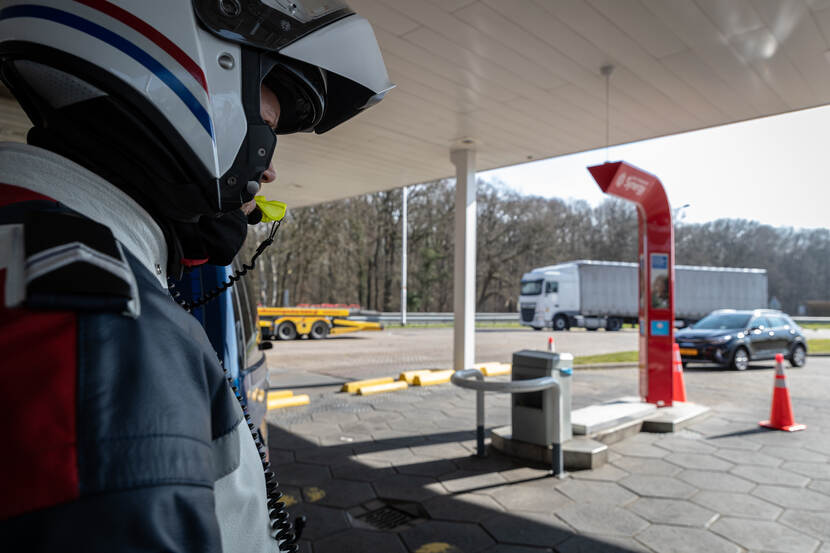 Thijs: “Toen ik bij het tankstation aankwam, zag ik dat de bestuurder aan het tanken was. Ik zag ook allerlei oogjes achter de ramen van zijn auto. Ik heb snel mijn collega’s geïnformeerd voor assistentie, want dit zou best eens interessant kunnen worden. Maar zij waren zelf druk met andere zaken op de controlestrook.