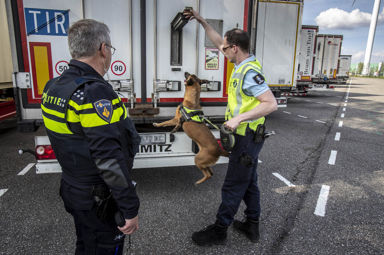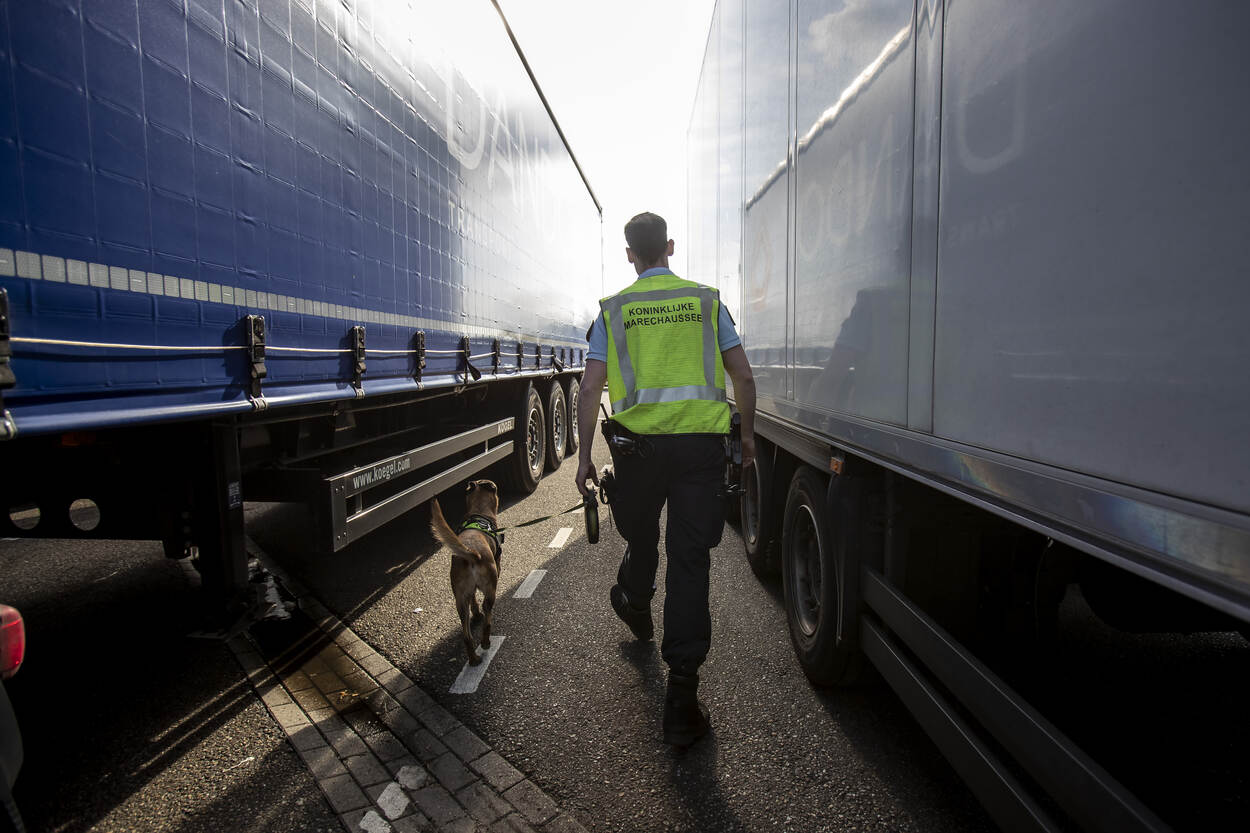 Actief controleren en informatie inwinnen: tijdens de MTV-controle werkte de KMar samen met de Afdeling Vreemdelingenpolitie, Identificatie en Mensenhandel (AVIM). De operationele collega’s werden tijdens het uitvoeren van de controles verder ondersteund door motorrijders van de Brigade Operationele Service & Support, die een selectie maakten uit het aanbod aan voertuigen. Migratiecontrolehonden en geleiders zochten de laadruimtes van vrachtwagens en bestelbussen af om eventuele inklimmers te kunnen vinden.