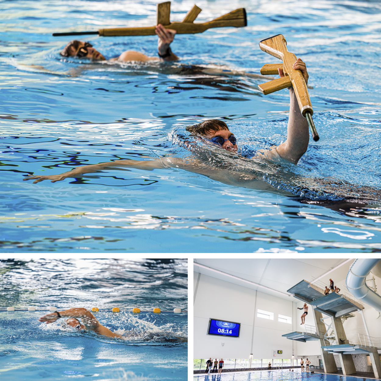 “3,2,1, start!”, roept instructeur opperwachtmeester Dennie van de afdeling Opleiden en Trainen van de BSB aan de rand van het zwembad. Enkele kandidaten zetten zich af tegen de rand om zo snel mogelijk aan de overkant te komen. De 1-daagse selectie begint met een zwemproef. De kandidaten moeten 25 meter zwemmen met een houten wapen, 25 meter onder water zwemmen, 200 meter afleggen in 4 minuten en 15 seconden, en van de 7,50 meter hoge duikplank springen.
