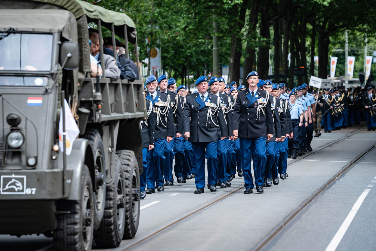 De afgelopen 2 jaar werd Nationale Veteranendag in aangepaste vorm georganiseerd vanwege COVID-19. Dit jaar was het nationale evenement in Den Haag weer terug. Een extra bijzondere editie, want maar liefst 18 detachementen van de krijgsmacht ontvingen een vaandelopschrift van Koning Willem-Alexander. Daarnaast liepen zo’n 3.500 veteranen en militairen, waaronder een detachement Afghanistan-veteranen van de KMar, mee in een defilé door de binnenstad van Den Haag.