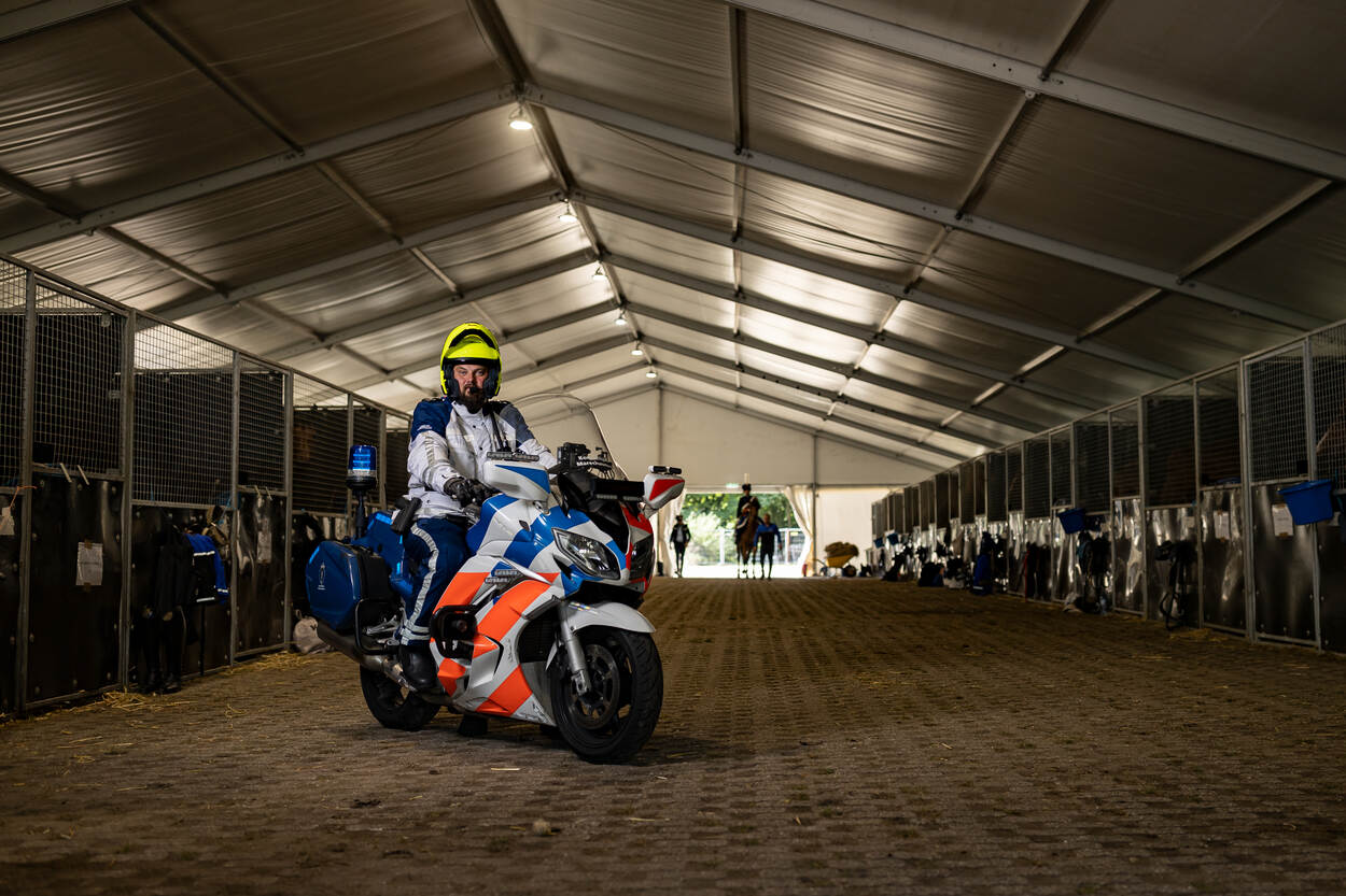 Het begeleiden van ruiters te paard is heel anders dan het reguliere werk dat ik als motorrijder uitvoer. Dat vind ik ook zo leuk aan deze inzet. Het is een andere tak van sport. Meestal verplaatsen we ons veel sneller door het verkeer. Nu rijd je langzamer, omdat je rekening moet houden met de paarden en ze niet wil laten schrikken. Ook vergt deze begeleiding een andere timing op kruispunten. Je wil het overige verkeer namelijk niet te lang ophouden. Alles is gelukkig weer soepel verlopen en het was een leuke en gezellige dag. Op naar volgend jaar!”