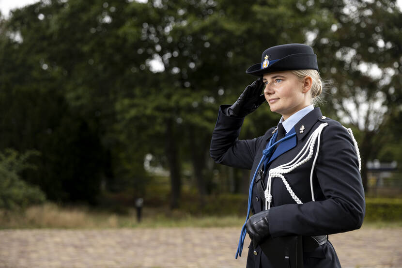 “Tijdens Prinsjesdag maakte ik deel uit van de ereafzetting en stond ik met mijn medestudenten opgesteld langs de route, die de koninklijke stoet aflegde. Onze locatie was het Lange Voorhout in het centrum van Den Haag. Op het moment dat de stoet met de koning en koningin naderde was het onze taak om netjes in de houding te gaan staan en de eregroet te brengen. Het was voor mij de eerste keer dat ik mee heb gedaan. Ik vond het een erg leuke ervaring. Dit blijft mij echt bij.