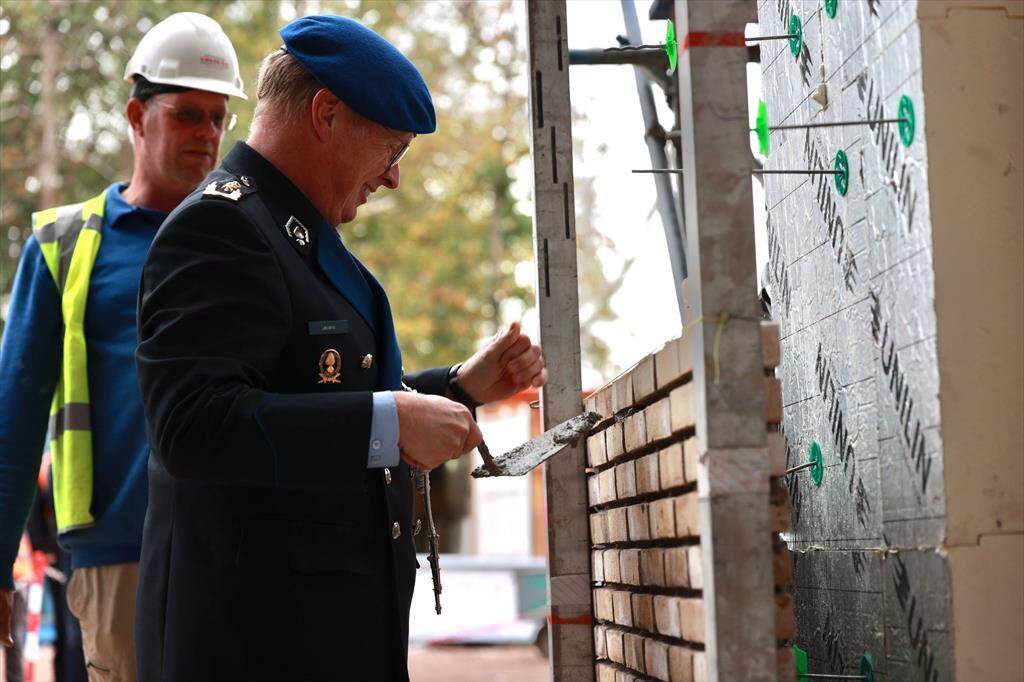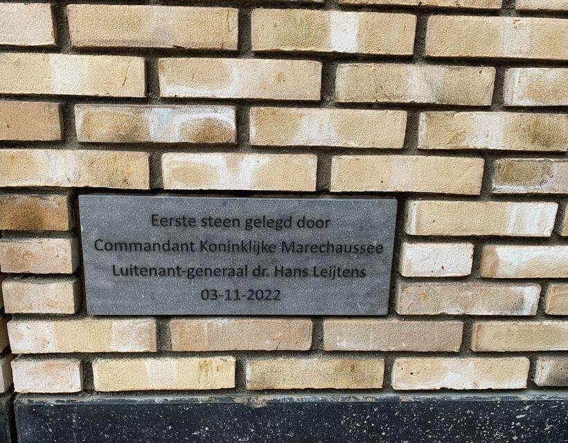 Commandant Koninklijke Marechaussee luitenant-generaal Hans Leijtens heeft de eerste symbolische steen gelegd voor het nieuwe kantoorcomplex van het Landelijk Tactisch Commando (LTC). De contouren van het gebouw op Camp New Amsterdam in Huis ter Heide zijn inmiddels al goed zichtbaar en met de onthulling van de steen werd de bouw feestelijk gevierd.