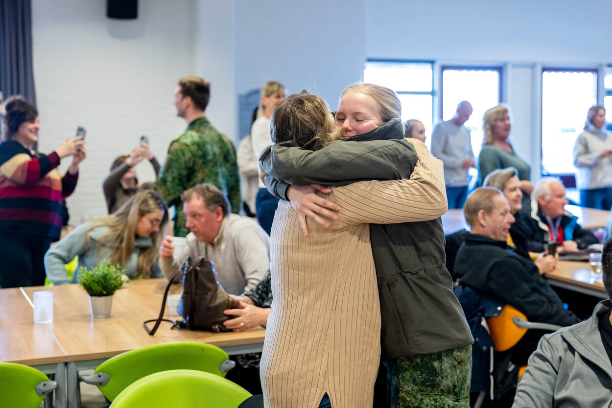 2 weken zaten ze intern, zonder contact met thuis. Nu volgt de hereniging met familie en vrienden. Niet in spijkerbroek, maar in het groen. 2 marechausseeklassen verwelkomden hun geliefden op de Koning Willem III-kazerne na de aftrap van hun opleiding op het Opleidings-, Trainings- en Kenniscentrum Koninklijke Marechaussee (OTCKMar).
