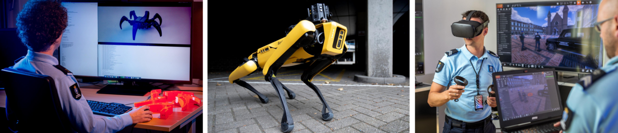 Het innovatiecentrum is nog jong en in opbouw, terwijl het ook al volop draait en bezig is met de begeleiding van innovatieve en creatieve marechaussees en het bouwen van netwerken. “We maken voor bepaalde expertise ook graag gebruik van stagiaires van hogescholen, universiteiten en studenten van Defensity College”, aldus Joep. Marleen is zo’n militaire werkstudent van Defensity College. Ze denkt mee over projecten en de opzet van het innovatiecentrum. Met een achtergrond in de gezondheidswetenschappen is ze niet meteen KMar-inhoudelijk bezig. “Maar ik kan wel mijn academische vaardigheden toepassen om een frisse blik te bieden en mee te denken.” En die blik van buiten is ‘goud waard’ en nodig om navelstaren te voorkomen, vult Laurens aan.
