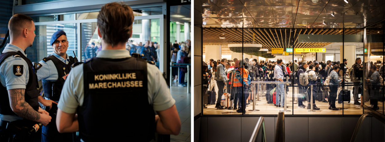 Schiphol meldt dat er deze meivakantie 14% meer reizigers vertrekken vergeleken met dezelfde periode in 2022 die al heel druk was. Teamleider Operaties adjudant Omar Boulachioukh kan zich die tijd goed herinneren. Reizigers moesten toen aansluiten in lange rijen, tot buiten de vertrekhallen aan toe.