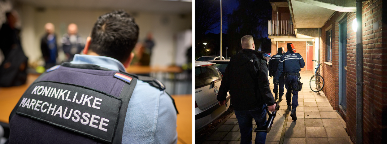 Toen Hareld en zijn team genoeg informatie over de groep hadden vergaard was het tijd voor actie. In 3 weken maakten ze een plan voor de woninginvallen en zochten ze het complete KMar-team bij elkaar. Er moesten collega’s uit het hele land komen om een ‘instapteam’ samen te stellen. “De forensische opsporing ging mee voor het geval er bijvoorbeeld vuurwapens zouden liggen. Ook waren er collega’s met verstand van digitale zaken. Zij weten meer van computers die we mogelijk in beslag moeten nemen. Of een router die we niet mogen vergeten”, vertelt Hareld.