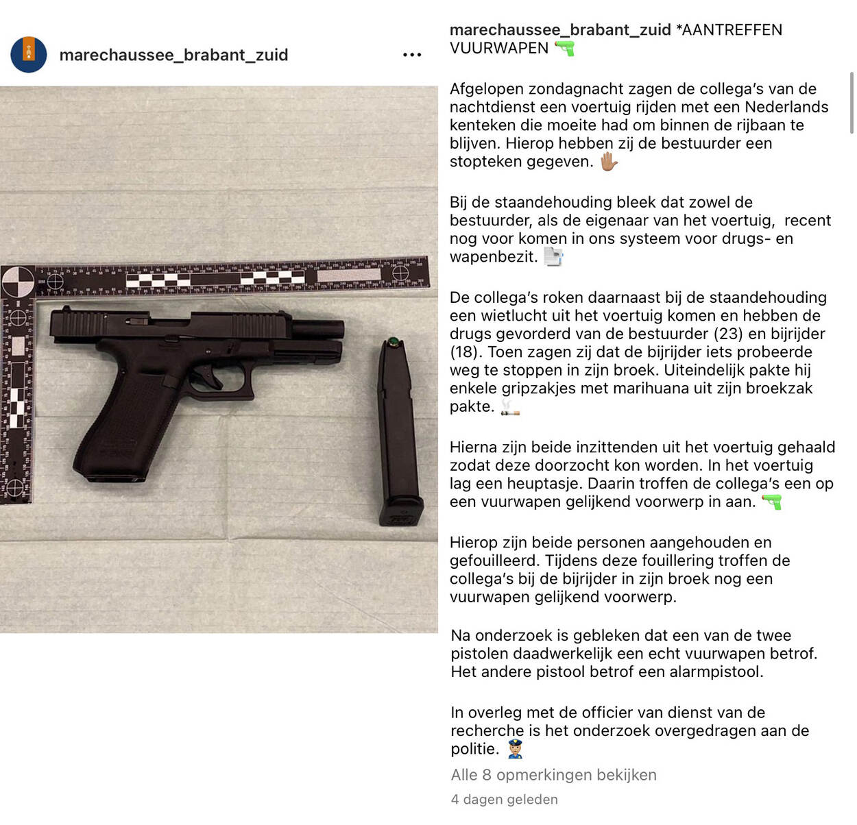 3 mannen uit Duitsland zijn gearresteerd bij een tankstation aan de A12 in Babberich. De mannen, in de leeftijden van 20 tot en met 26 jaar, waren in het bezit van een mes en worden verdacht van het witwassen van meerdere duizenden euro’s. Marechaussees controleerden de auto van de 3 omdat zij daaruit een sterke wietlucht roken. In de auto zaten 2 mannen en uit hun verhalen bleek dat er nog een derde man bij moest zijn. Deze man had zich verstopt op het toilet. In de prullenbak daar vonden de marechaussees een zak met geld, in totaal € 25.000, die de man daarin kennelijk had gedumpt. Alle 3 de mannen zijn aangehouden, het geld en het wapen zijn in beslag genomen.