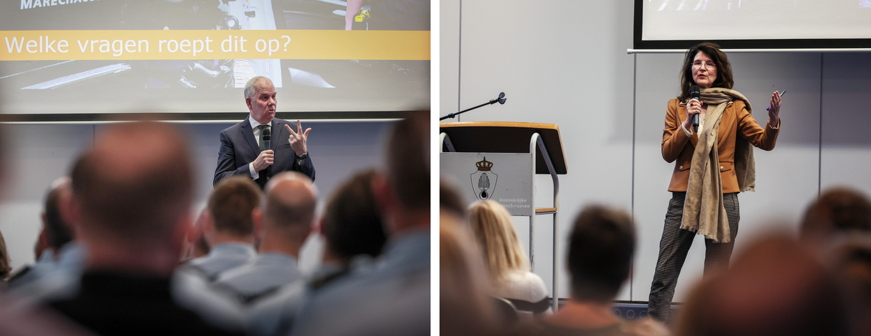 En het klopt, er gebeurt ook veel. Daarom legt ze deze vraag tijdens de speciale bijeenkomst in Apeldoorn ook neer bij haar leidinggevende officieren. Van dreiging aan de NAVO-grenzen tot dreiging in eigen land vanwege cyberaanvallen en ondermijnende criminaliteit. Er is veel onzekerheid en dit raakt het werk van de Marechaussee, is de boodschap van Nationaal Coördinator Terrorisme en Veiligheid (NCTV) Pieter-Jaap Aalbersberg, een van de gasten. “Alles wat buiten gebeurt, raakt ons ook binnen en vice versa”, zegt hij in zijn toespraak.