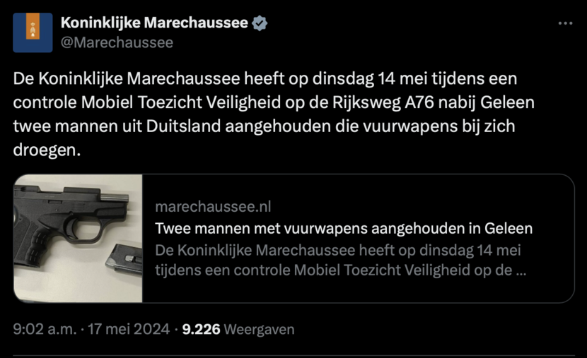 De Koninklijke Marechaussee en de Douane hadden een flinke buit bij de grensovergang op de A16 bij Hazeldonk. In een bestelbus lagen meer dan 1 miljoen illegale sigaretten. De inzittenden van de bus zijn aangehouden. De Koninklijke Marechaussee hield samen met de Douane een controle bij de grensovergang op de A16 bij Hazeldonk. Tijdens deze controle werd een bestelbus gecontroleerd die Nederland in wilde rijden. Na de 2 inzittenden moest ook de laadruimte eraan geloven, en jawel: een flinke illegale buit.