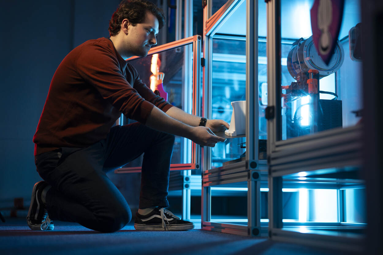 Alice: “Binnen Deep Vision zijn we ooit begonnen met een aantal experimenten op het gebied van 3D-printing. Die experimenten ontwikkelden zich tot dit lab, waarin we zelf snel verschillende sensoren aan elkaar kunnen koppelen. Voor ons onderzoek naar de inzet van robots binnen de Marechaussee is dit een gamechanger gebleken. We kunnen supersnel interactief ontwikkelen zonder een tussenpartij. Ons lab staat nu zo goed bekend binnen Defensie dat collega’s van andere onderdelen naar ons komen voor hulp, terwijl dit een paar jaar geleden nog andersom was.”