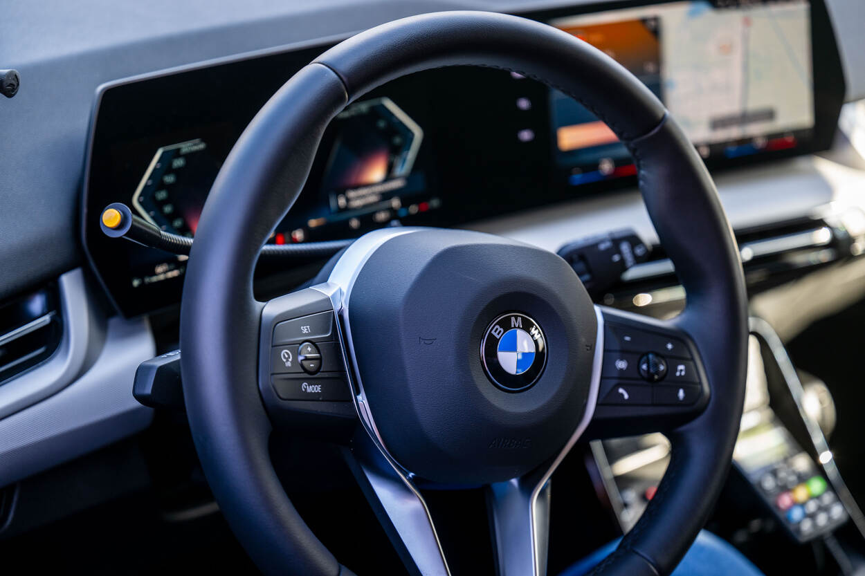 Stafmedewerkers Rob (rechts op de foto) en adjudant Fred namen de eerste X1 Striping in ontvangst. De moderne bolide ziet er even compact als flitsend uit. Uiteraard met de herkenbare striping; een patroon van gekleurde strepen dat in Nederland wordt gebruikt op voertuigen van hulpverleningsdiensten. In de komende periode onderwerpt de Marechaussee de eerste X1 aan verschillende gebruikerstesten. In totaal rollen er 78 binnen. Zoals het er nu uitziet worden de eerste exemplaren in het derde kwartaal van dit jaar geleverd. De X1’s vervangen de meer dan 10 jaar oude Opel Astra’s (30 stuks), de MB B-klasse (11) en Seat Ateca’s (27). Qua kilometrage en leeftijd zitten die aan het einde van hun levensduur. De chauffeurs voor de BMW X1 hoeven geen aparte rijopleiding te volgen. Dankzij interne trainingen voldoen ze aan de eisen. Overigens bestaat de kans dat we in de toekomst meer dan 78 X1’s krijgen. “Wanneer meer voertuigen het eind van hun levensduur bereiken, vervangen we ze”, legt Rob uit. Bij de keuze voor een opvolger van Opel en Seat ging Defensie niet over 1 nacht ijs. 2 dagen lang testten marechaussees met verschillende achtergronden 4 typen auto’s op het circuit van de Politieacademie in Lelystad. Dat gebeurde onder leiding van de rijinstructeurs van de Brigade Speciale Beveiligingsopdrachten (BSB). Naast de BMW X1 ging het om de Opel Grandland, de Audi Q3 en de Seat Cupra Formentor. De uiteindelijke keuze voor de BMW zat ‘m in de rijeigenschappen, wegligging, veiligheid, acceleratie en topsnelheid. De omvang van de kofferruimte en de ergonomie voldeden eveneens aan de eisen. Nieuwigheidje: de X1 is uitgerust met zogeheten ‘pods’ met daarin blauwe zwaailichten in plaats van de traditionele draagbalk met alarmlampen. Ze zijn aangebracht in de hoeken van het dak. Bij hoge snelheid vermindert deze constructie het windgeruis, een ‘euvel’ waarmee de van een draagbalk voorziene Opel en Seat kampten. Al met al scoorde de X1 volgens Rob en Fred op alle testpunten uitmuntend. Daar komt bij dat de voorkeur uitging naar een hoge auto, zodat de bestuurder boven het verkeer kan uitkijken en beter op situaties kan anticiperen. “Een hoge auto verbetert je awareness. Ook dit maakt de X1 uitstekend inzetbaar voor taken waarbij snelheid en een goede wegligging vereist zijn. Denk aan grensbewaking en politiewerk. Met de BMW X1 Striping gaan we met de tijd mee”, besluit Fred.