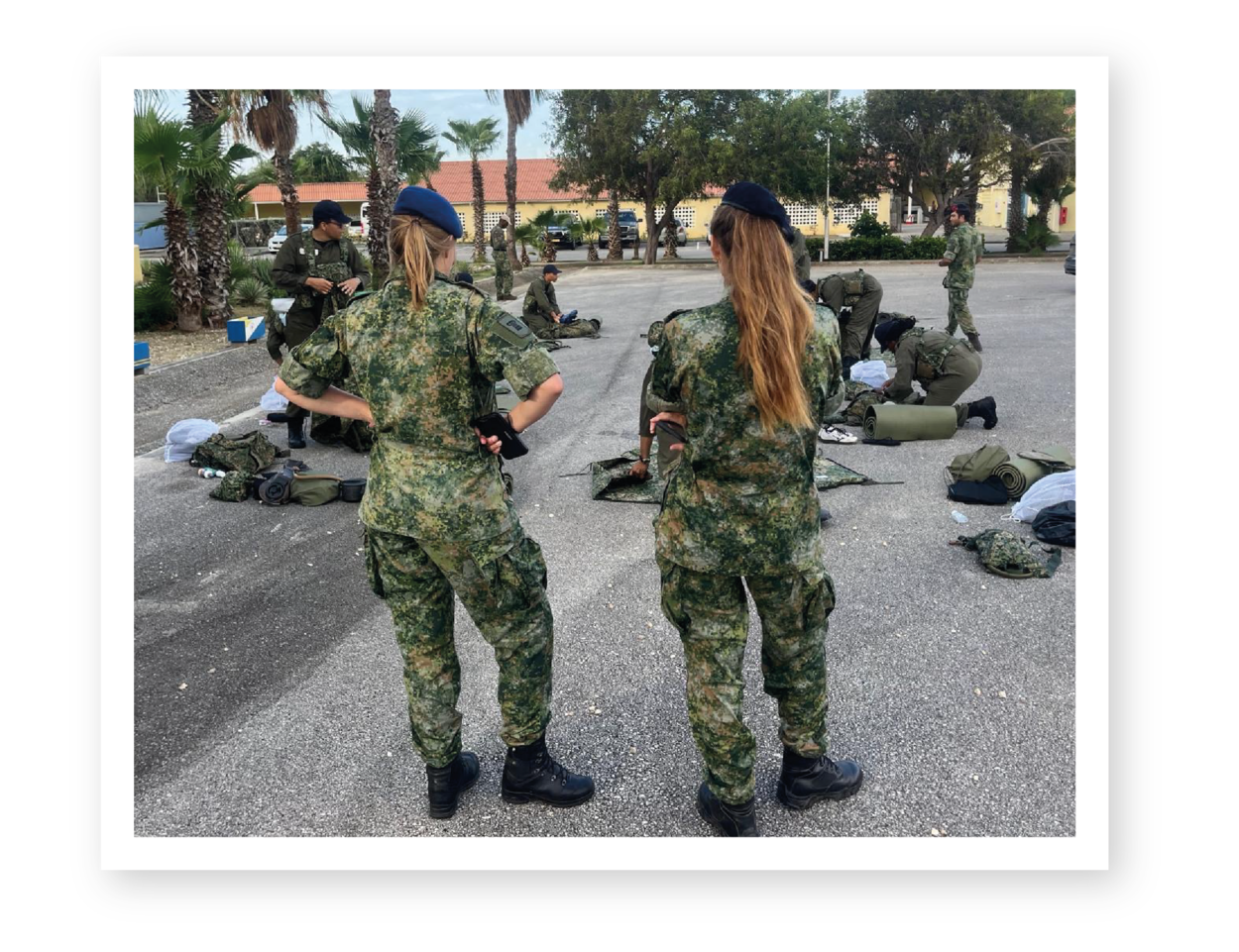 Hoewel het DC-programma ‘paars’ is en ik daarom ook veel te maken heb met andere krijgsmachtonderdelen, ben ik nog altijd blij dat ik aan het begin van mijn tijd bij Defensie voor het marechausseetenue heb gekozen. Als ik deze functie in de Carib niet had gekregen, was ik graag naar de Koninklijke Militaire Academie (KMA) gegaan om als beroeps de organisatie in te stappen. Dit zit zeker nog in mijn achterhoofd, dus grote kans dat ik die weg ooit alsnog insla. Dat ik hoe dan ook bij Defensie wil blijven, staat voor mij in ieder geval vast.