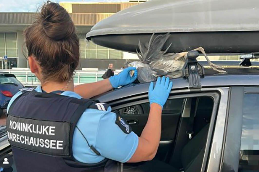 “Vanavond ontvingen wij een melding dat er een ‘birdstrike’ had plaatsgevonden op de snelweg tussen een auto en een reiger. De auto is vervolgens gestopt op de luchthaven Schiphol en aldaar hebben wij het beestje bevrijd en overgebracht naar de dierenambulance.”