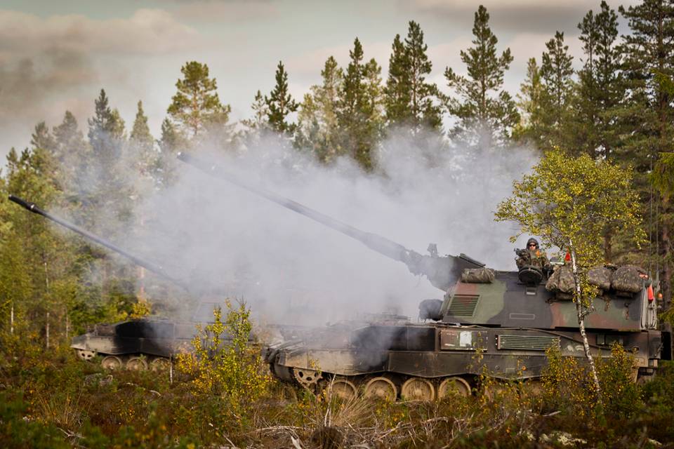 De aarde dreunt in het oefenterrein van het Noorse Rena. De Pantserhouwitsers van de Bravovuursteunbatterij van het Vuursteuncommando (VustCo) knallen vrijwel onophoudelijk. “Een echt mannelijk wapen”, zegt wachtmeester-1 Leslie Neuteboom als een nieuwe serie ‘bommen’ de lucht in gaat.